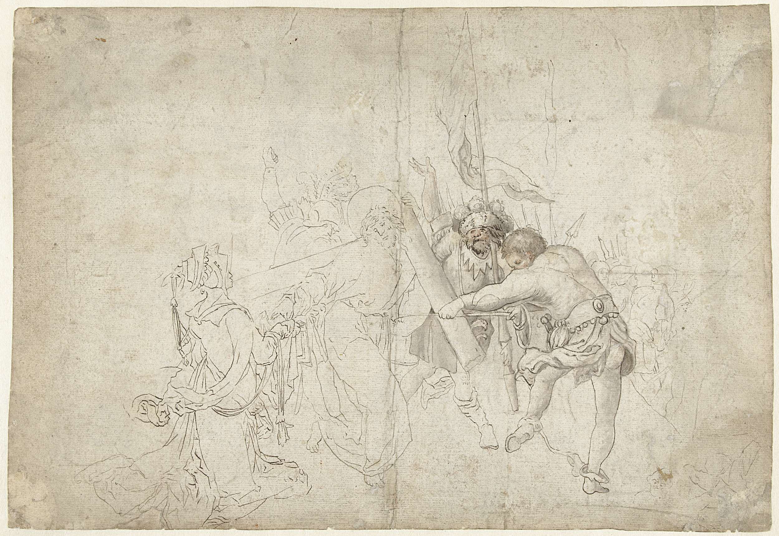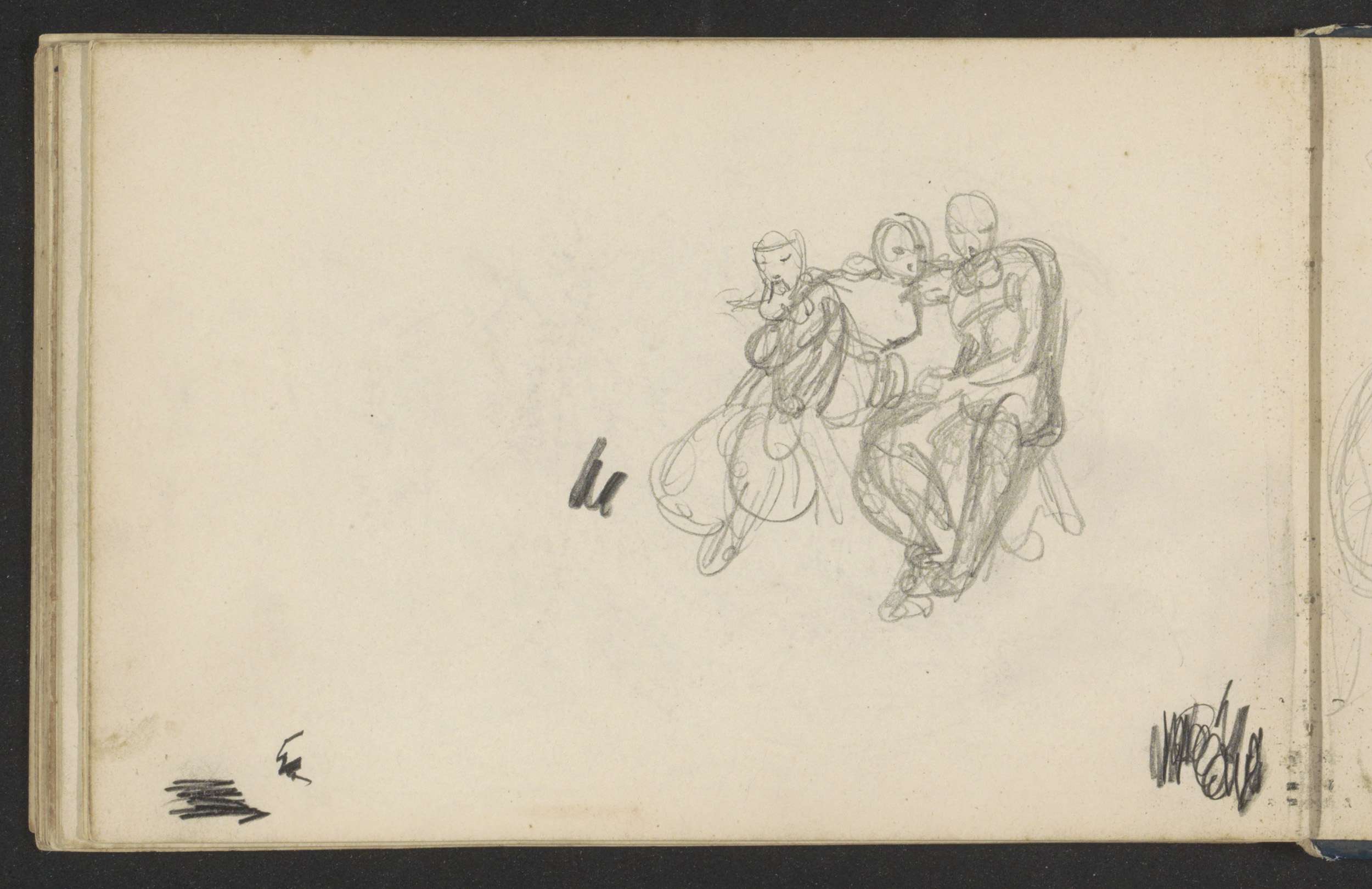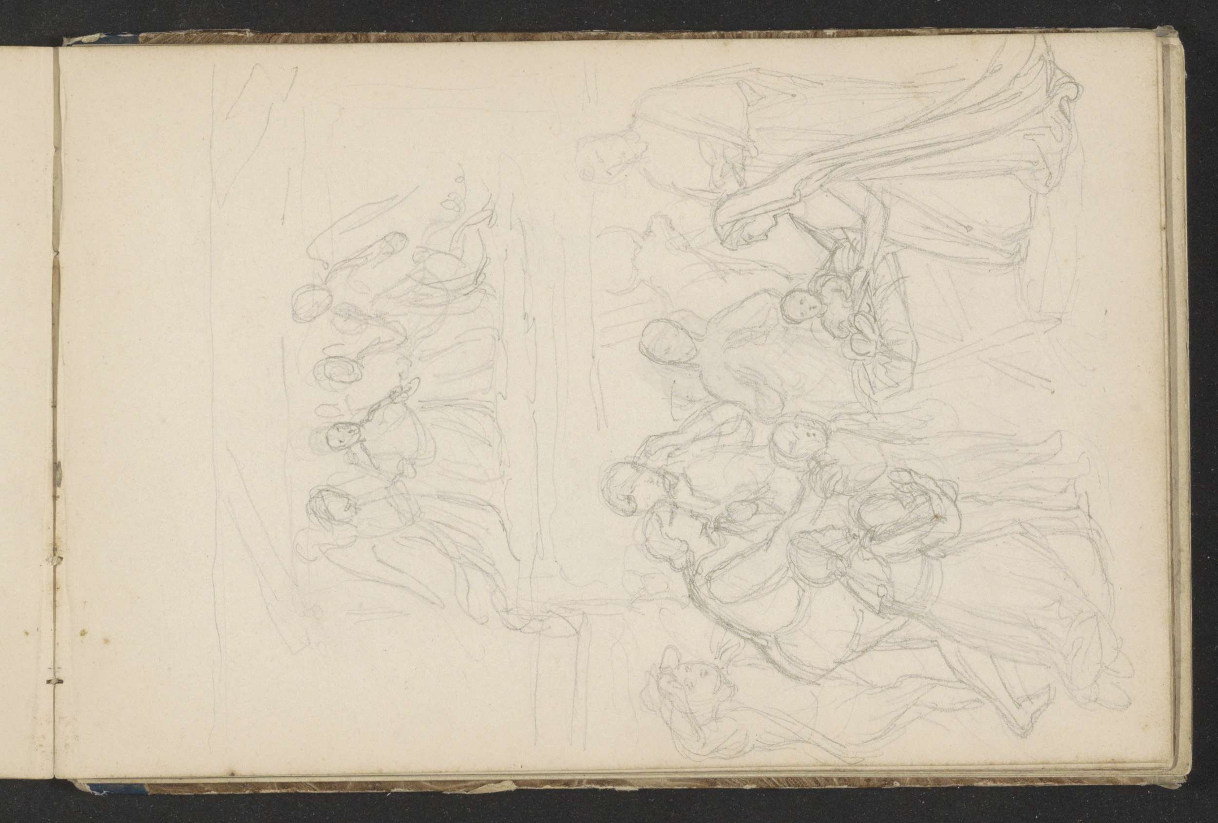 Twee geknielde figuren en twee kopstudies