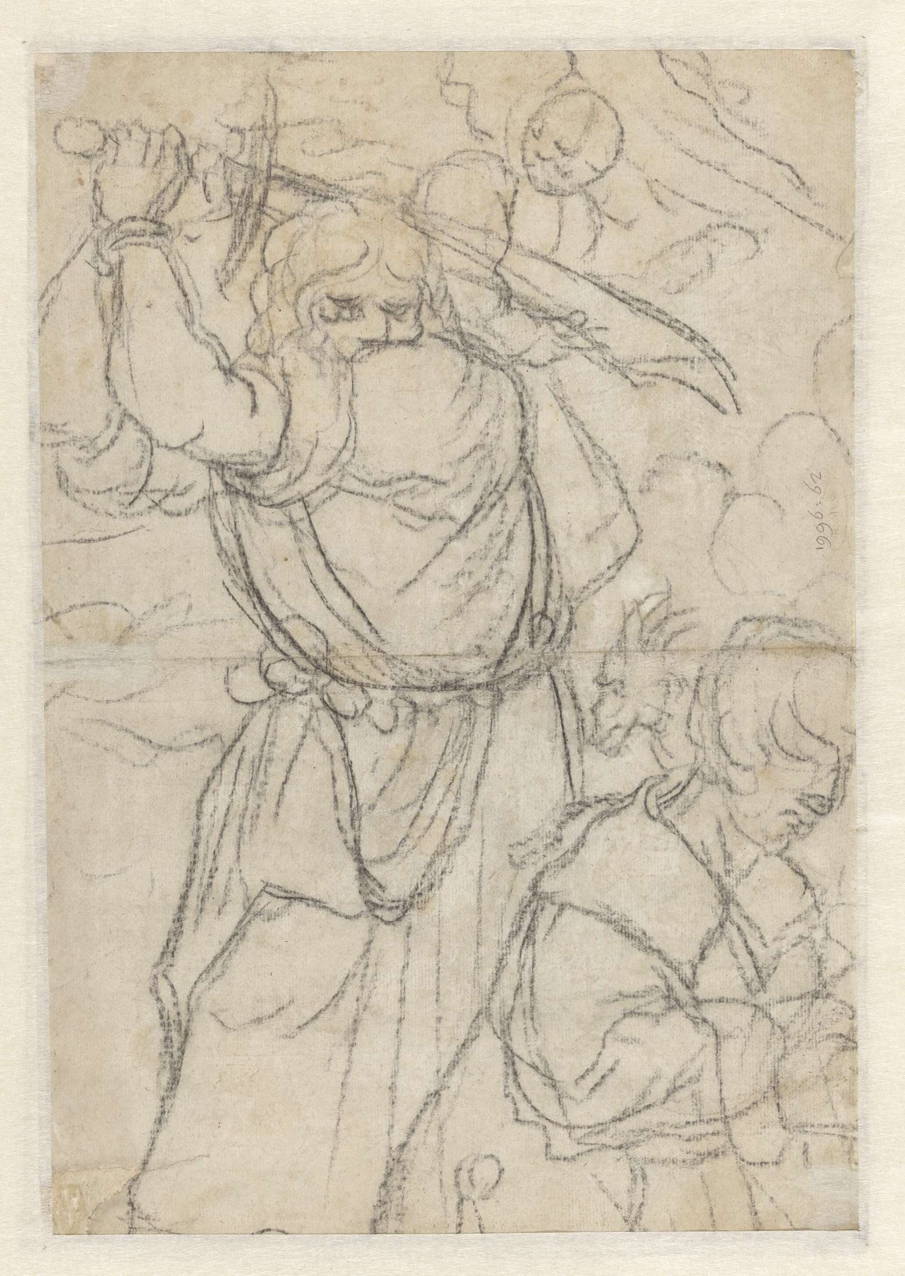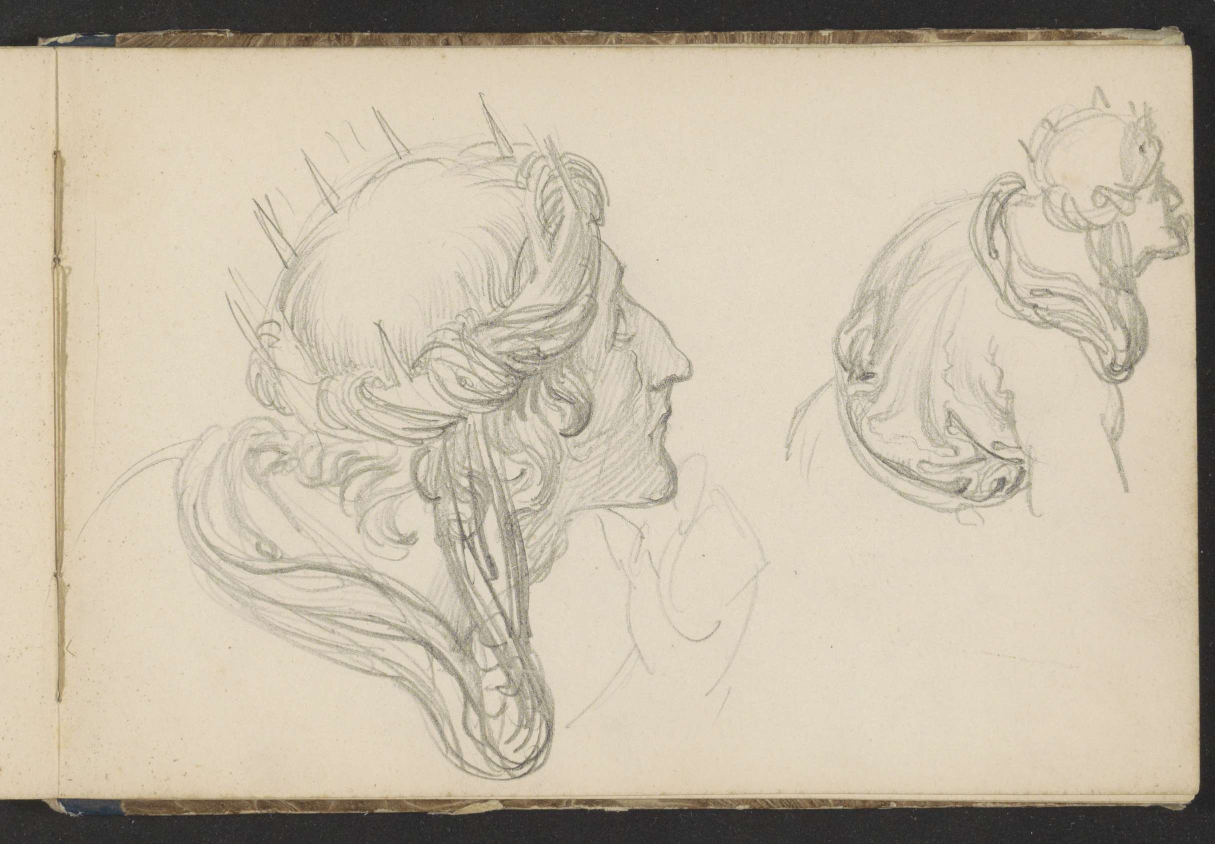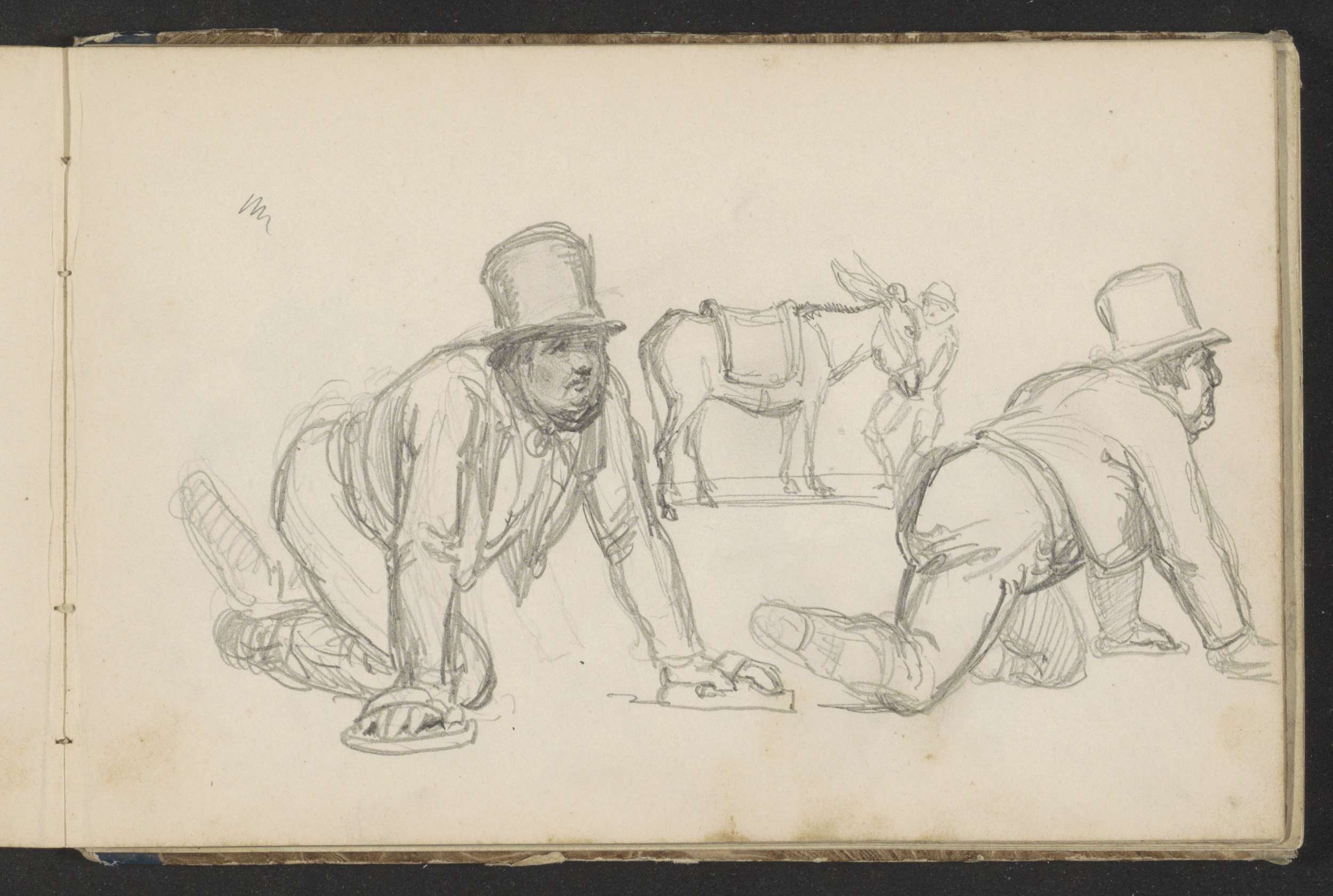 Twee geknielde figuren en twee kopstudies