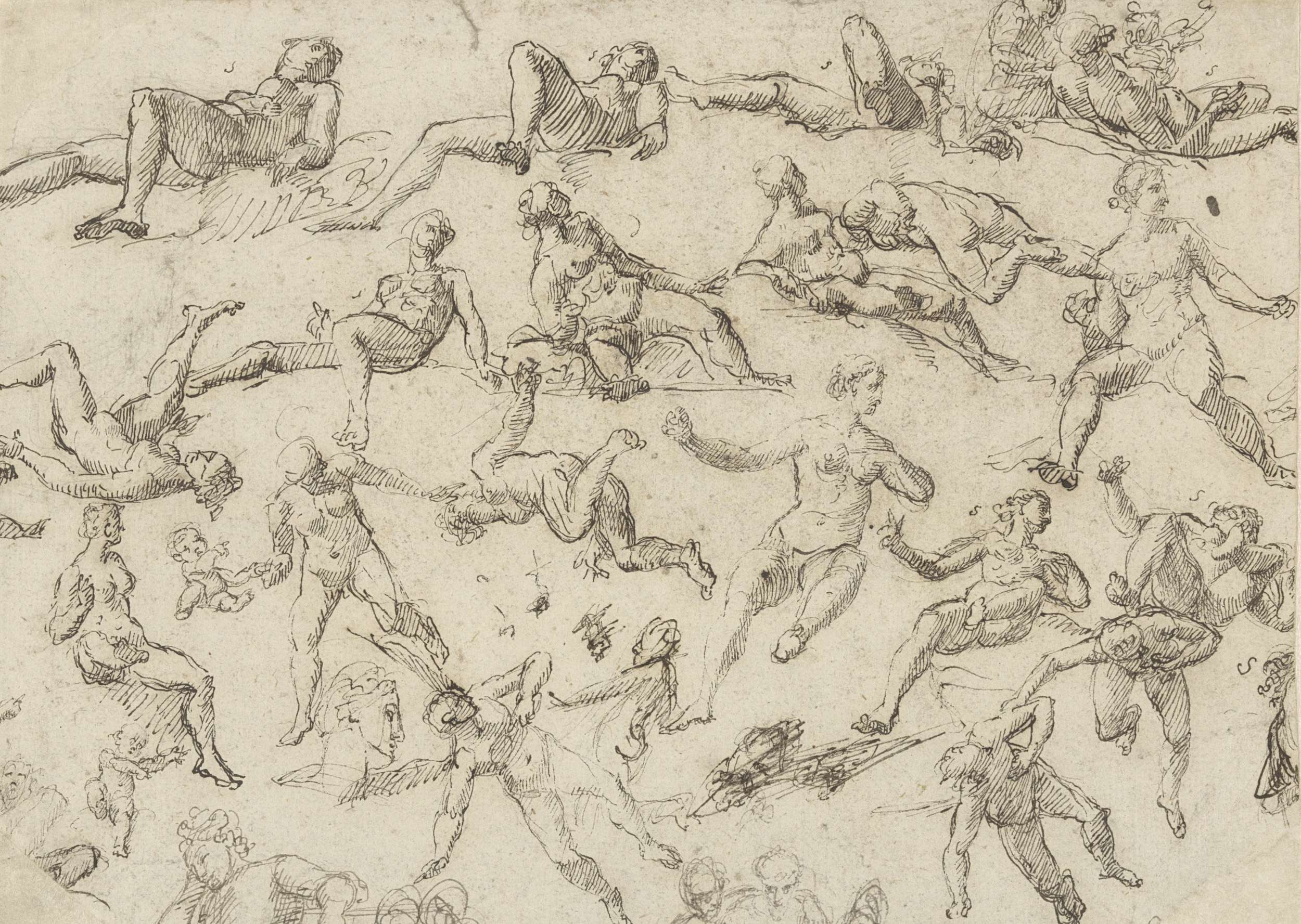 Studieblad met naakte vrouwen, kinderen en hoofden