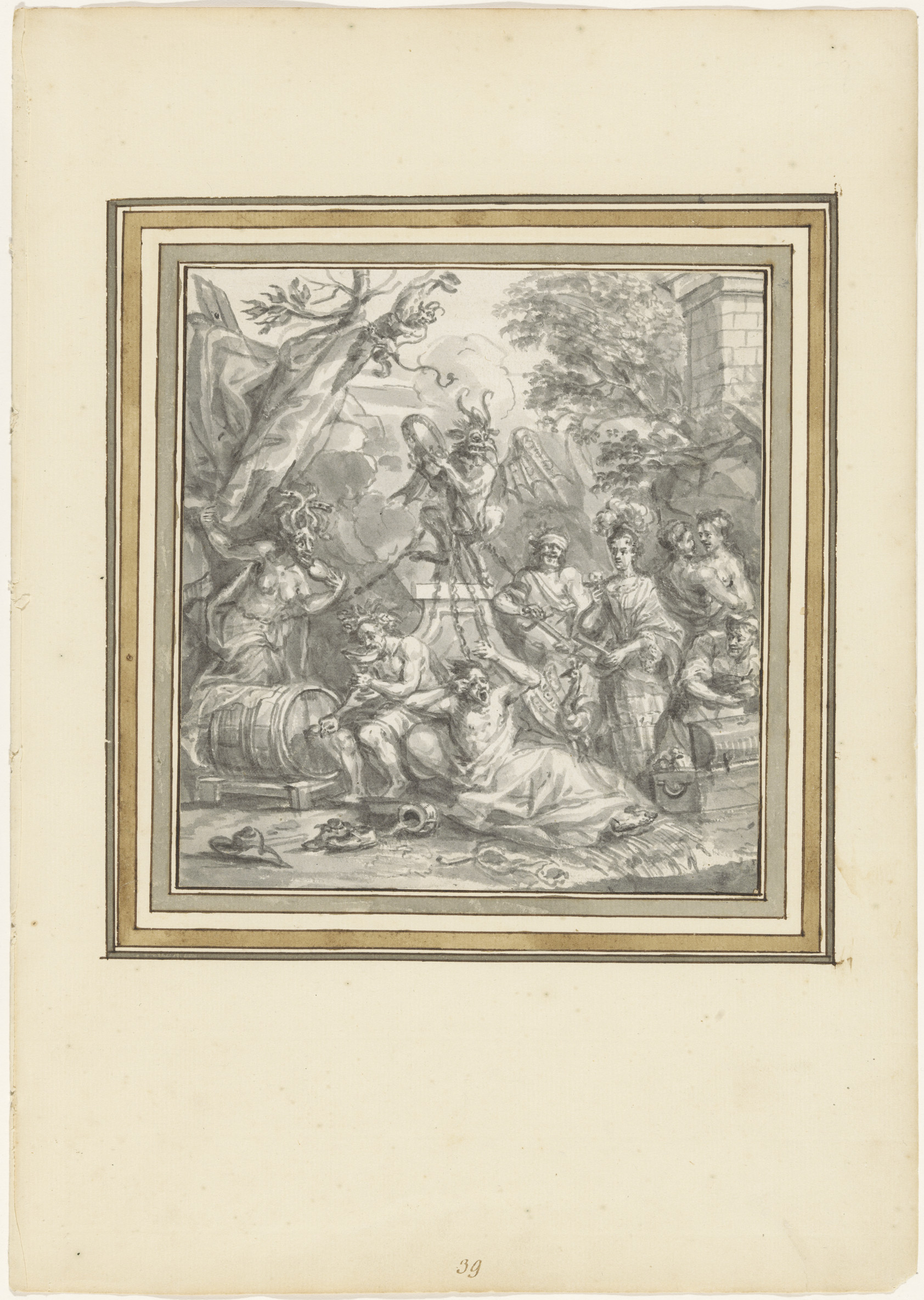 Ontwerp voor een titelblad met Apollo en de Muzen