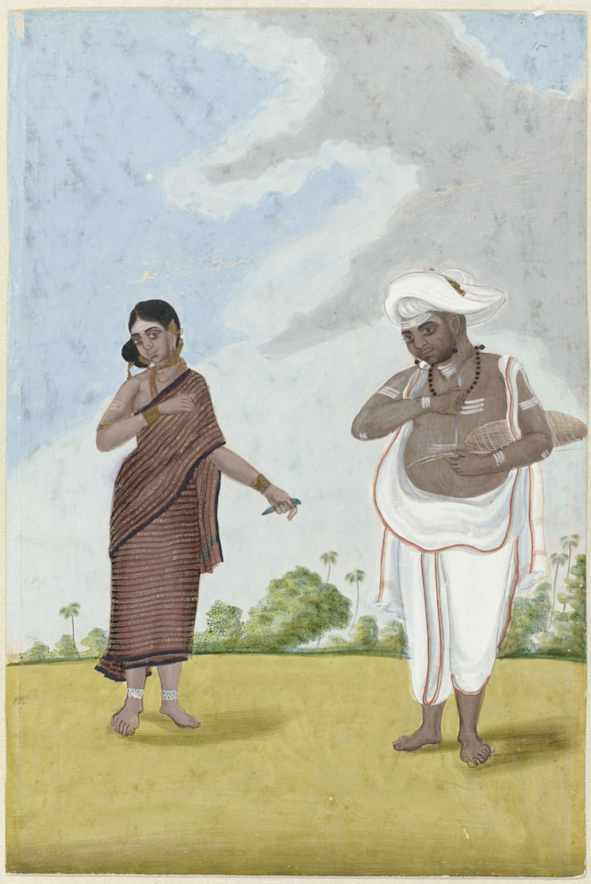 Waarzegger en zijn vrouw staan in een landschap