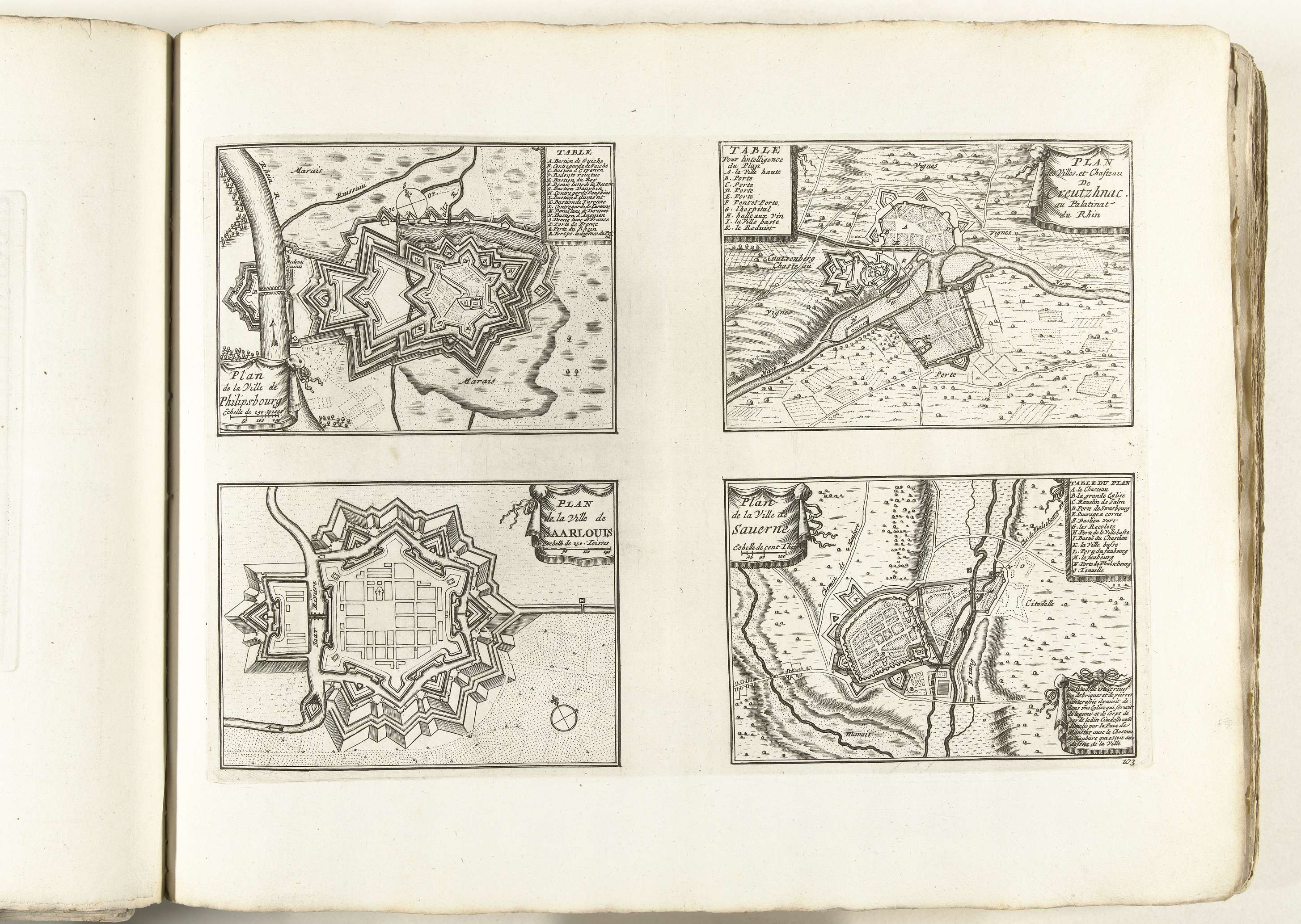 Plattegronden van Philippsburg, Kreuznach, Saarlouis...