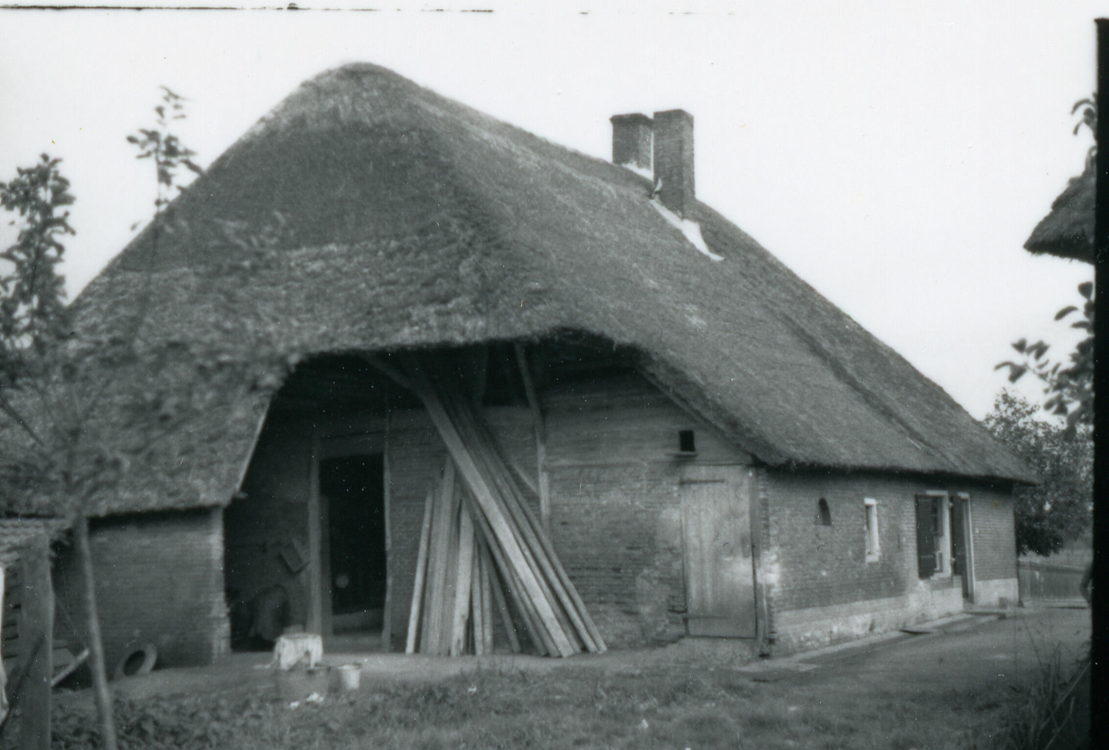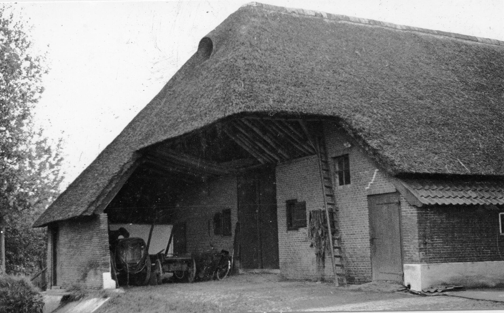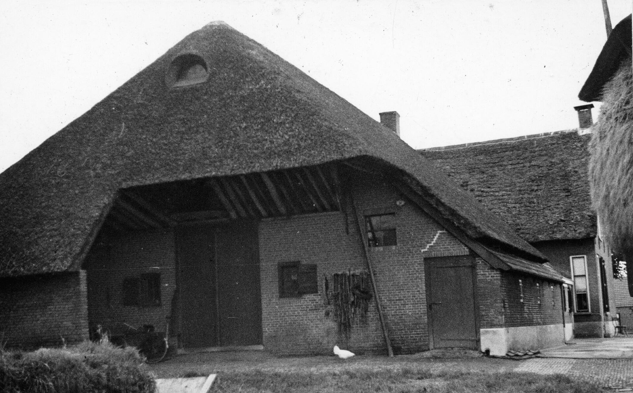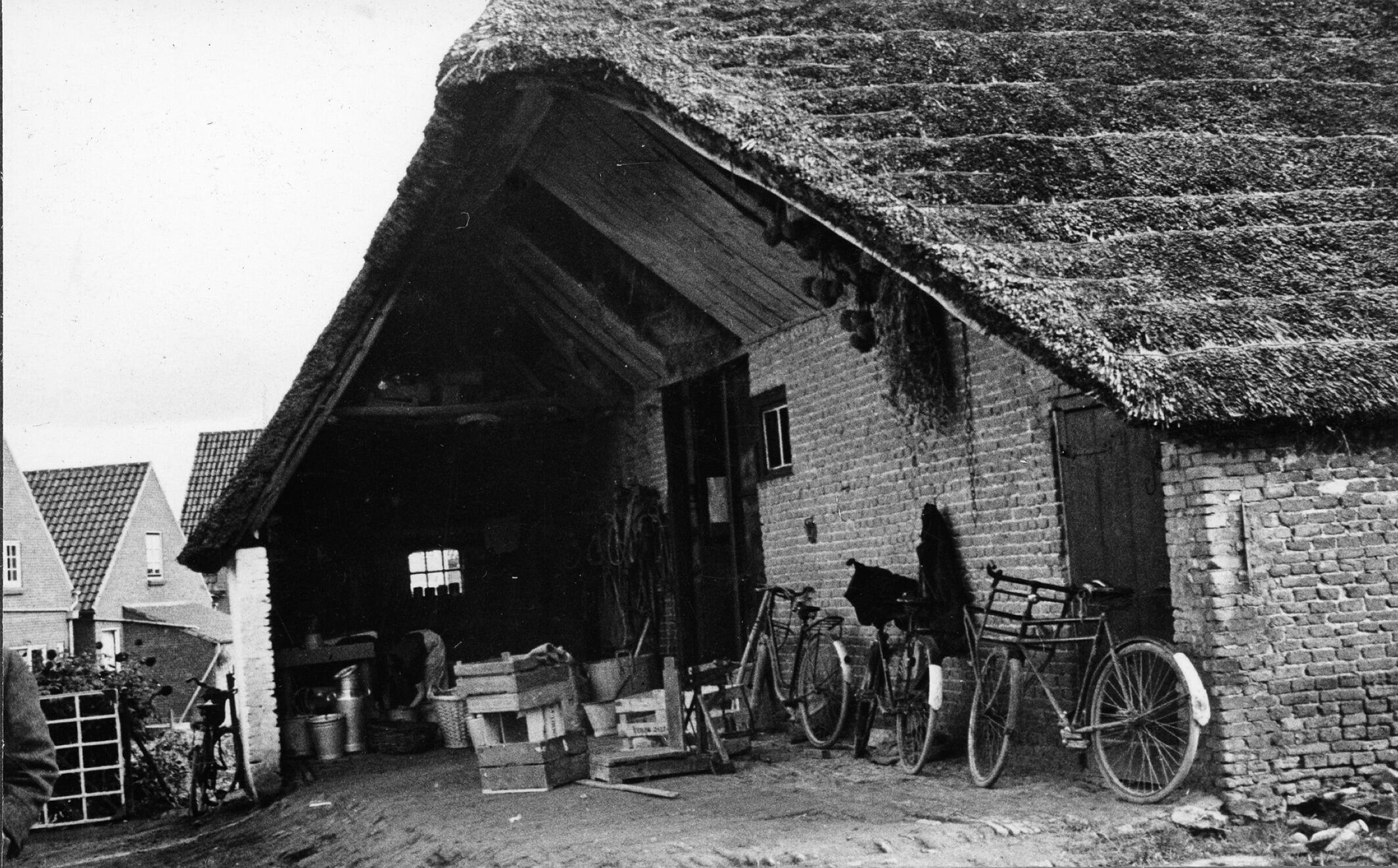 Overstek van een boerderij, Brakel, 1936 (zwart-wit ...
