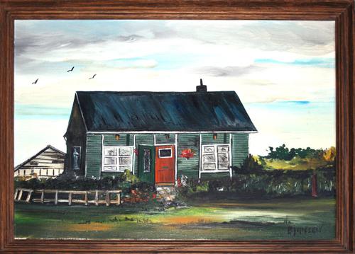 Olieverf op doek. Arie Moree huisje aan de Maassluis...
