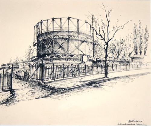 Potloodtekening. Gasfabriek Vlaardingen.