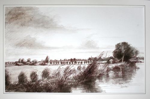 Gewassen pentekening. Vlaardingse Vaart met polderla...