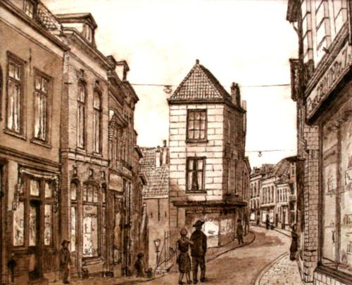 Pentekening. Hoogstraat met ‘het Pad’ naar de Kuiper...