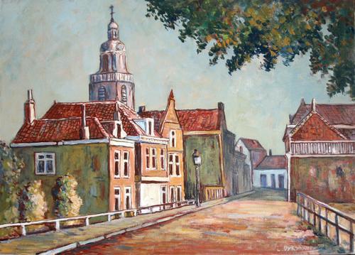 Olieverf op doek. Smalle Havenstraat Vlaardingen.