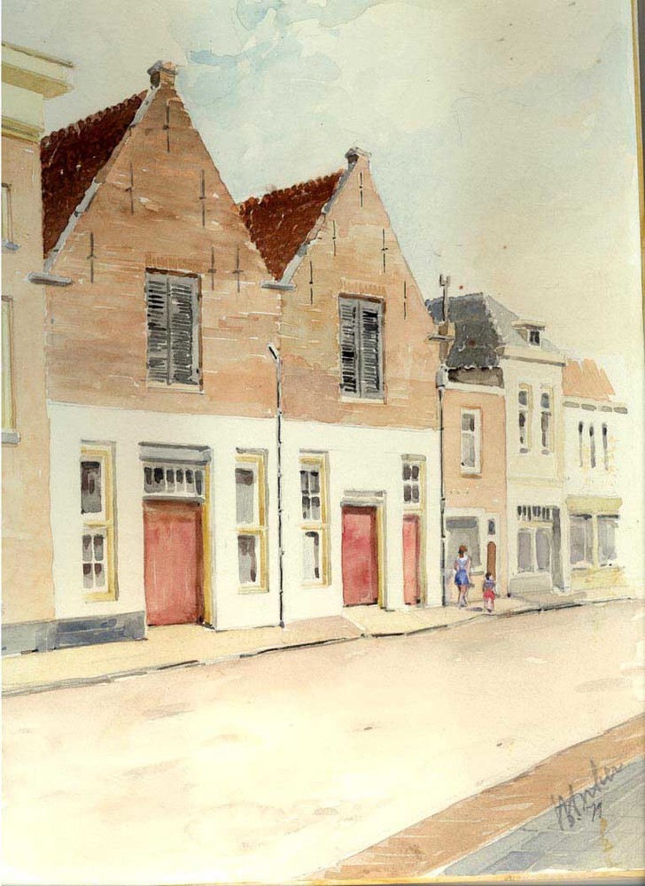 Aquarel, voorstellende de pakhuizen van Straatman aa...