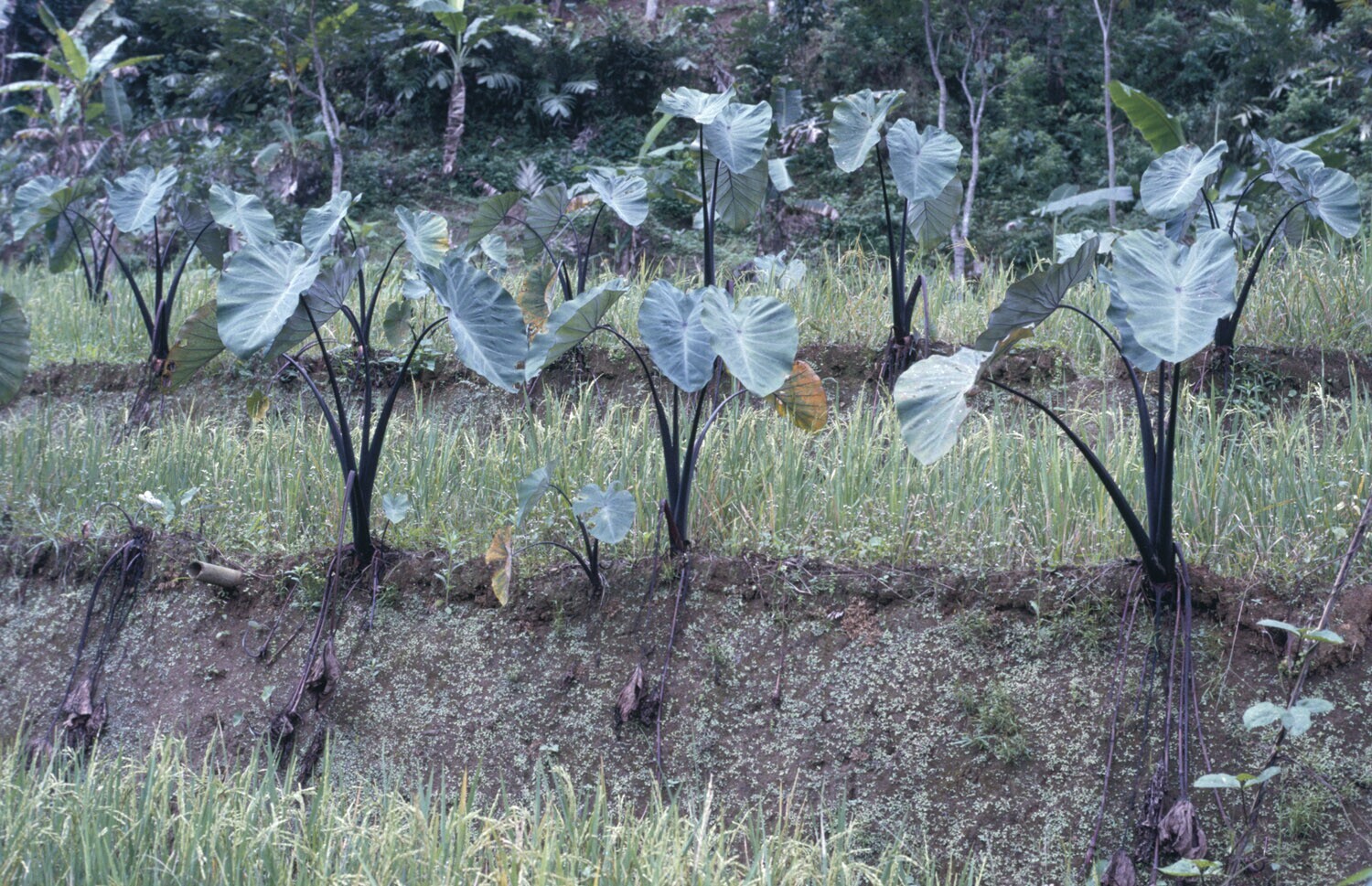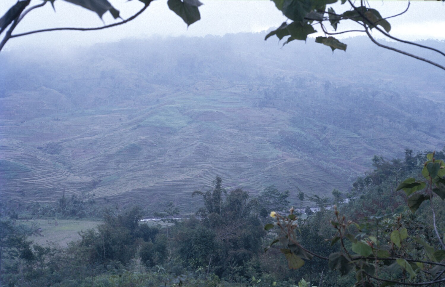 Landschap met de vulkaan Argapoera op de achtergrond.