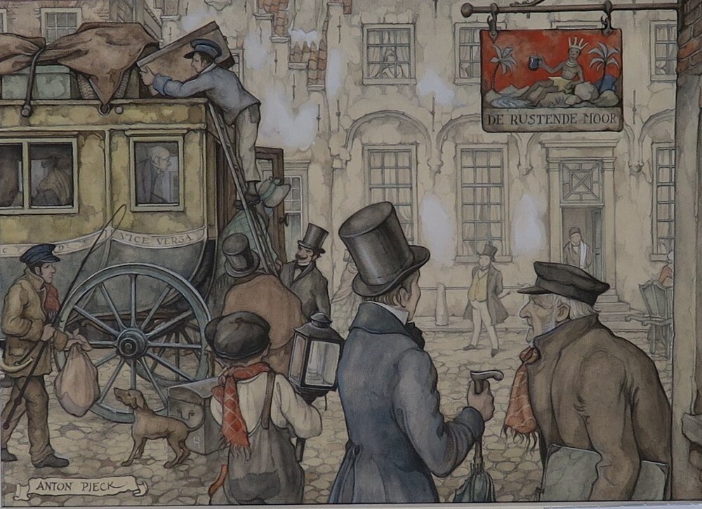 Kalenderplaat 'Diligence bij De Rustende Moor'