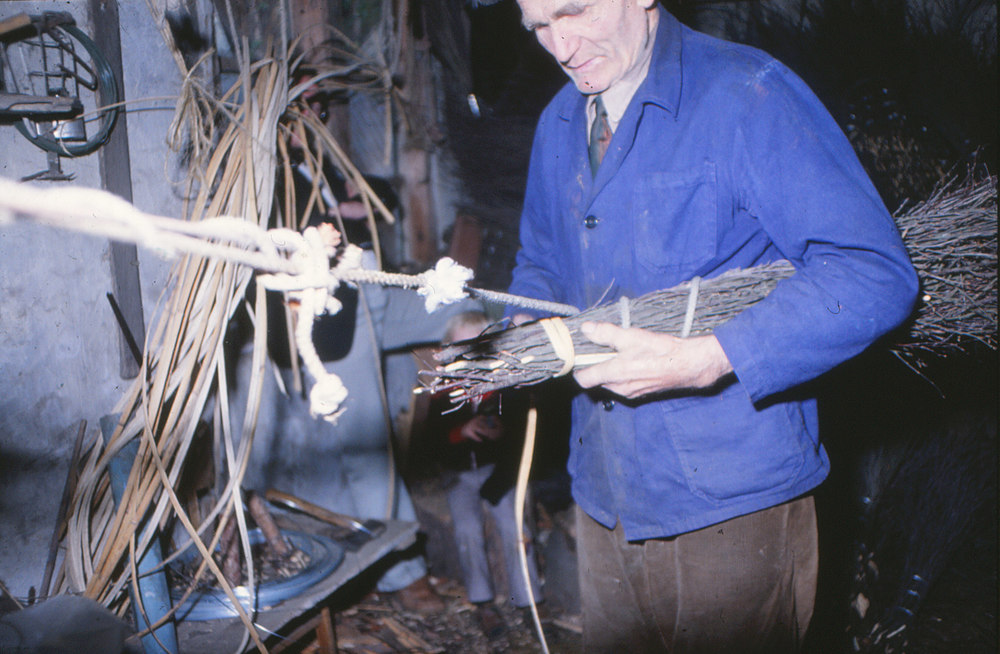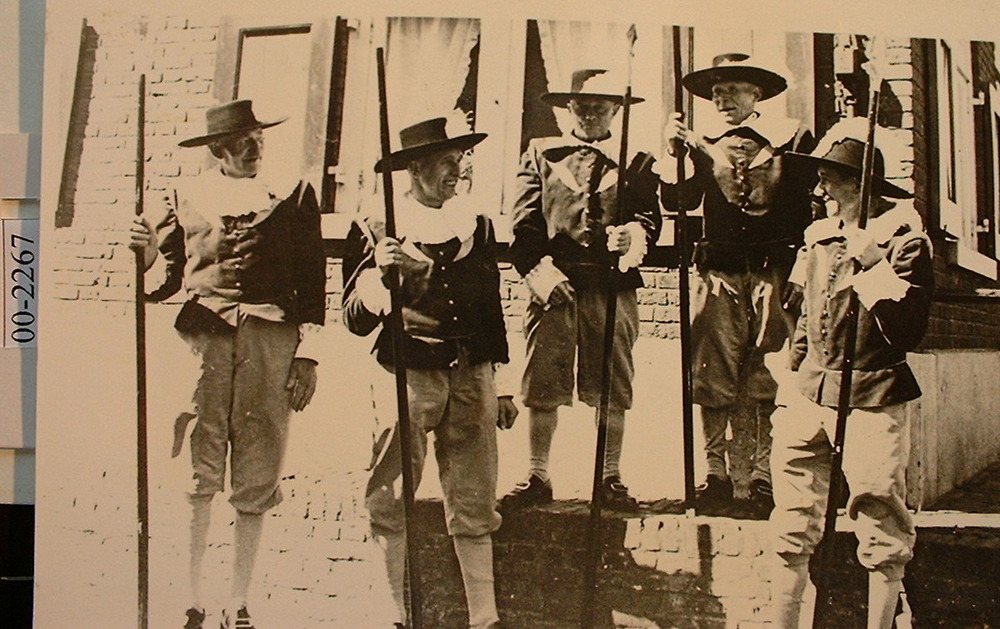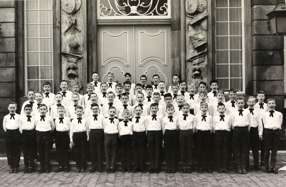 Zwart-wit foto van het inhalen van de pastoor in Her...