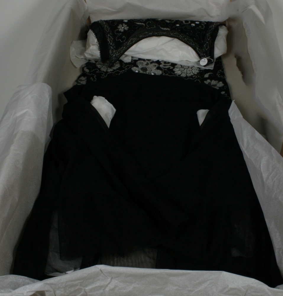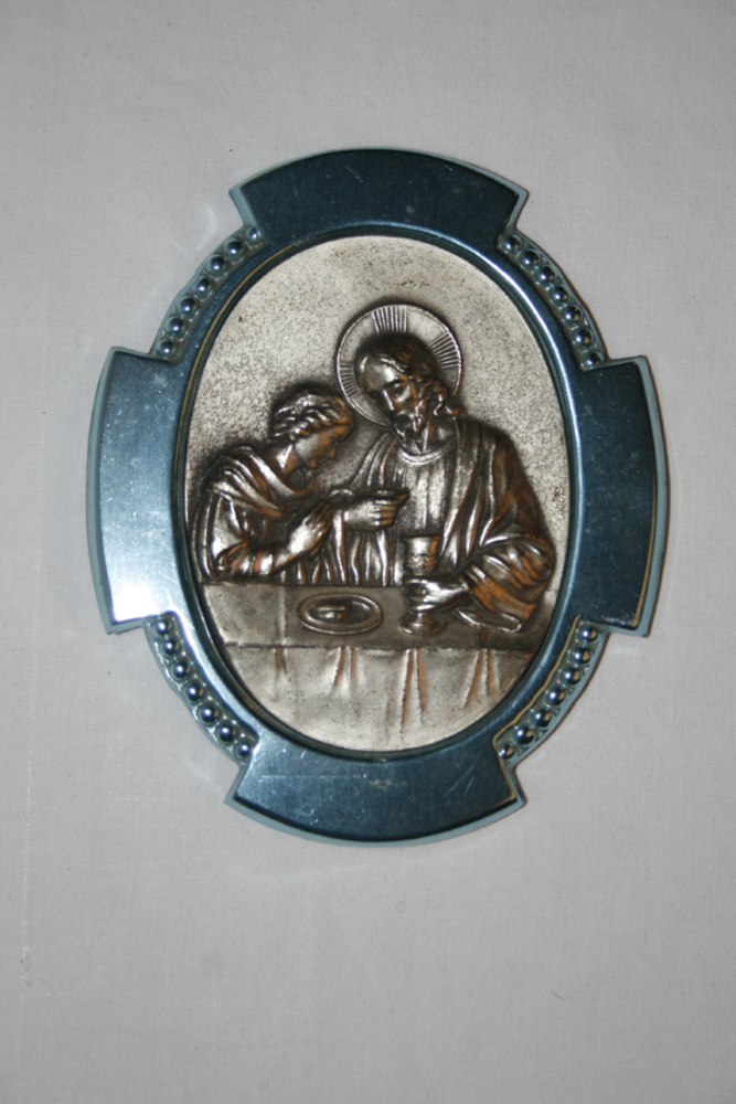 Langwerpige spiegel van glas met tekst ca. 1970-2005