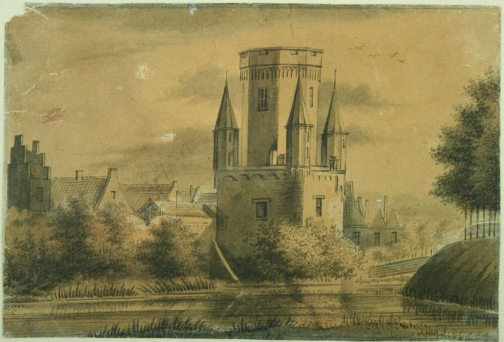 Gezicht op de burcht op het Valkhof en de Belvedere ...