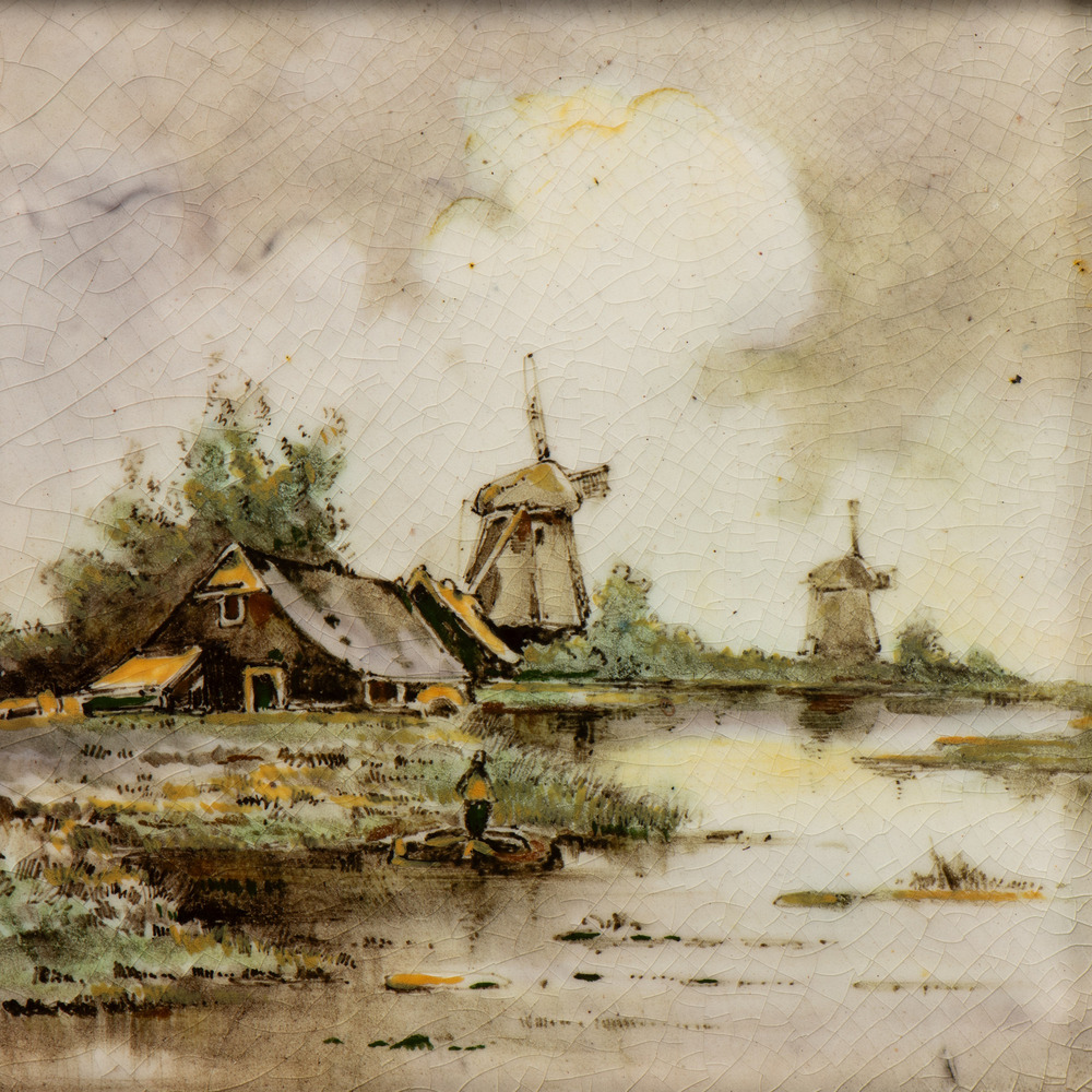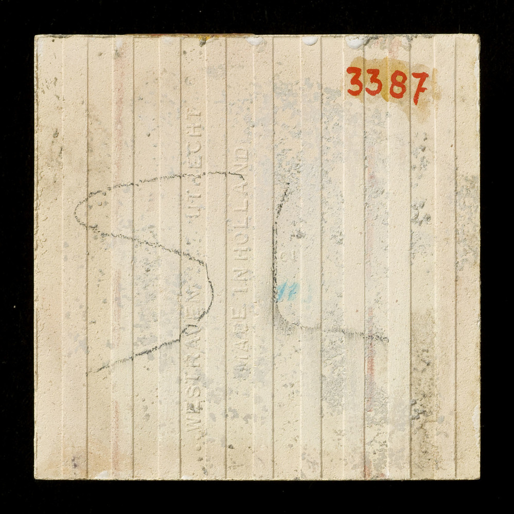 Tegel van keramiek, onderglazuur, voorstellende: Tit...