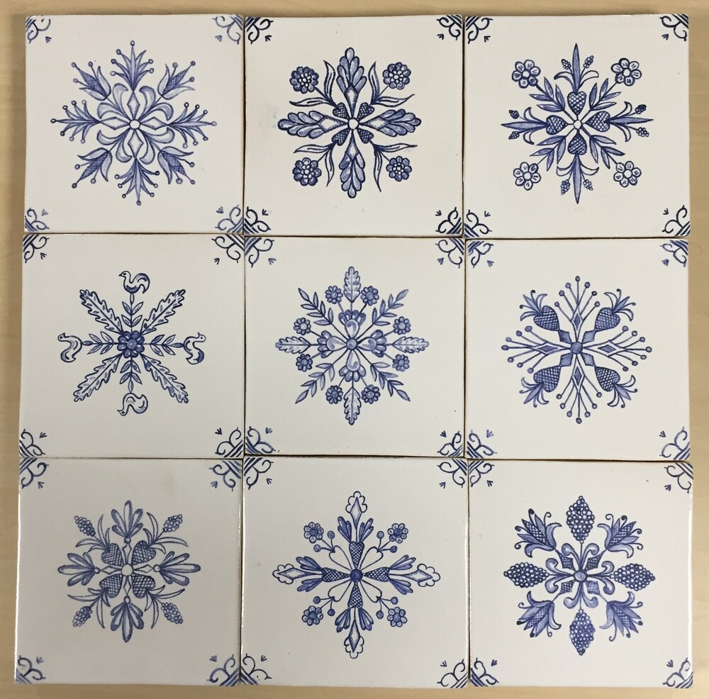 tegel van keramiek met tinglazuur, voorstellende: De...