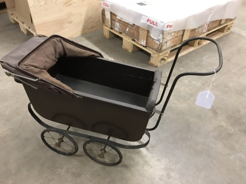 Poppenwagen van bruin geverfd triplex, met verplaats...