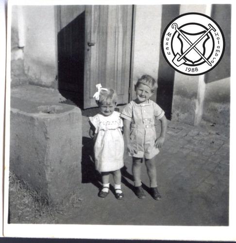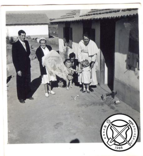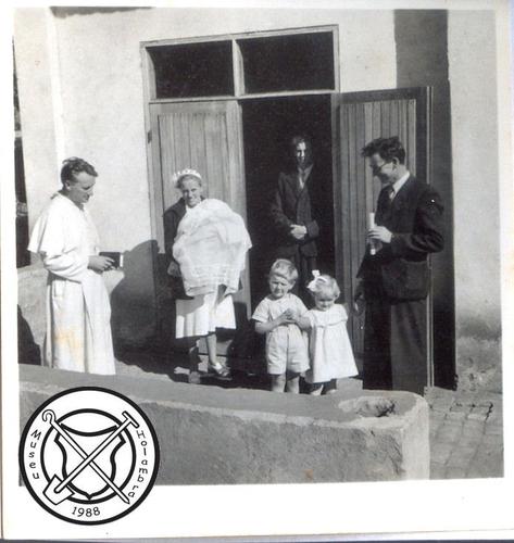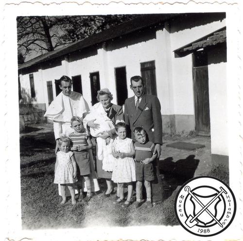 Bij het huis van de familie Hermans voor of na een doop