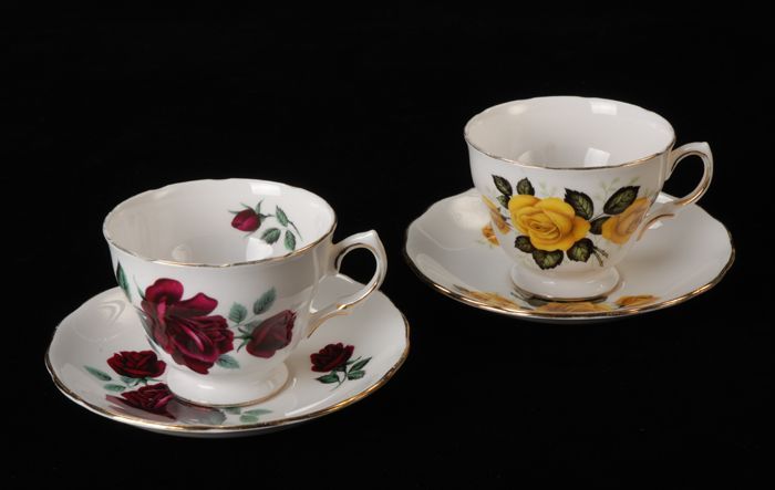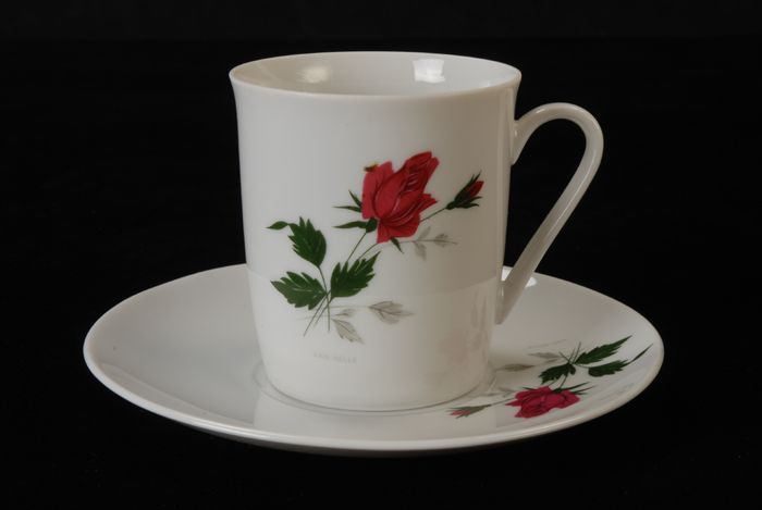 Kop (A) en schotel (B) voor Van Nelle, met rode bloemen
