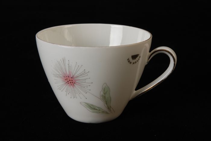 Koffiekop voor Van Nelle met roze en gele bloem, dee...