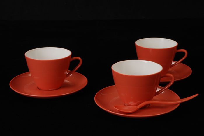 Oranjerode kop en schotel van Van Nelle, Bolta campi...