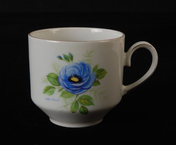 Koffiekop voor Van Nelle met twee blauwe bloemen, de...
