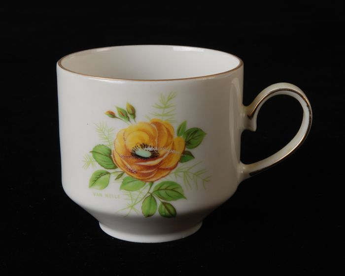 Theekop voor Van Nelle met gele en roze bloem, deel ...