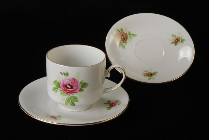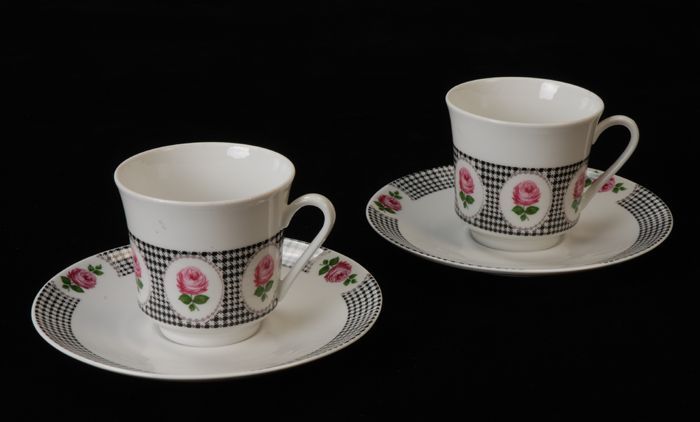 Koffiekop voor Van Nelle met twee roze bloemen, deel...
