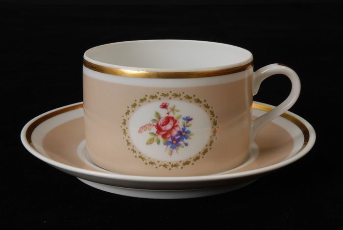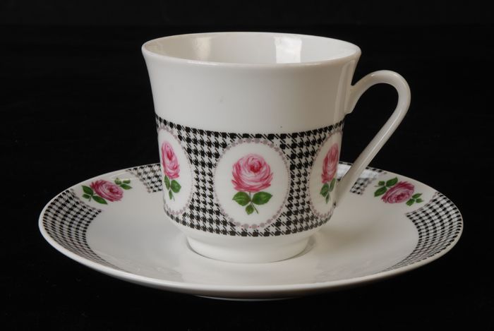 Kop en schotel voor Van Nelle, kop met roze bloemen,...