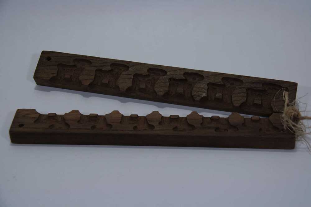 Marsepeinvorm van gips met afbeelding van een bakerkind