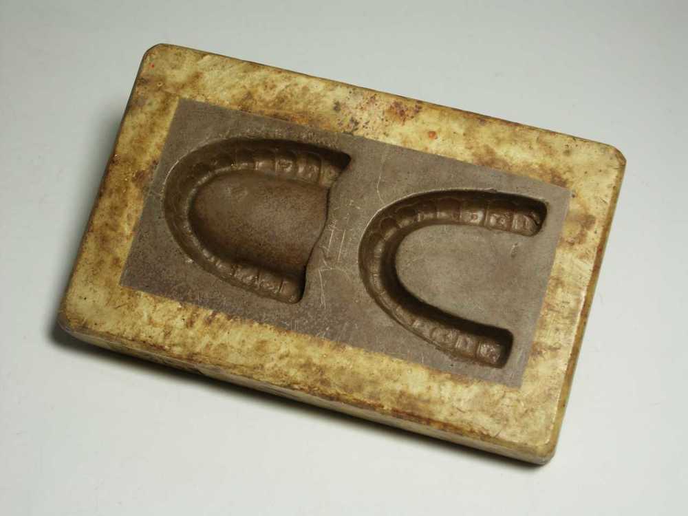 Marsepeinvorm van gips en zwavel in de vorm van bene...