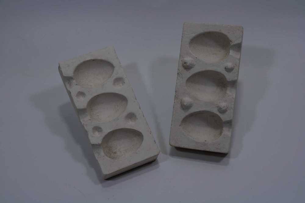 Suikerwerkvorm van gips voor 3 paaseitjes