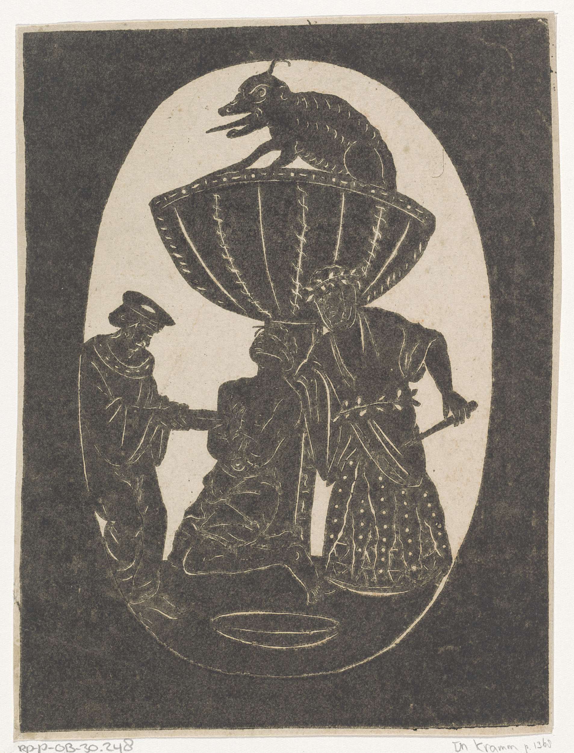 Silhouet van twee mannen met een geblinddoekte gevan...