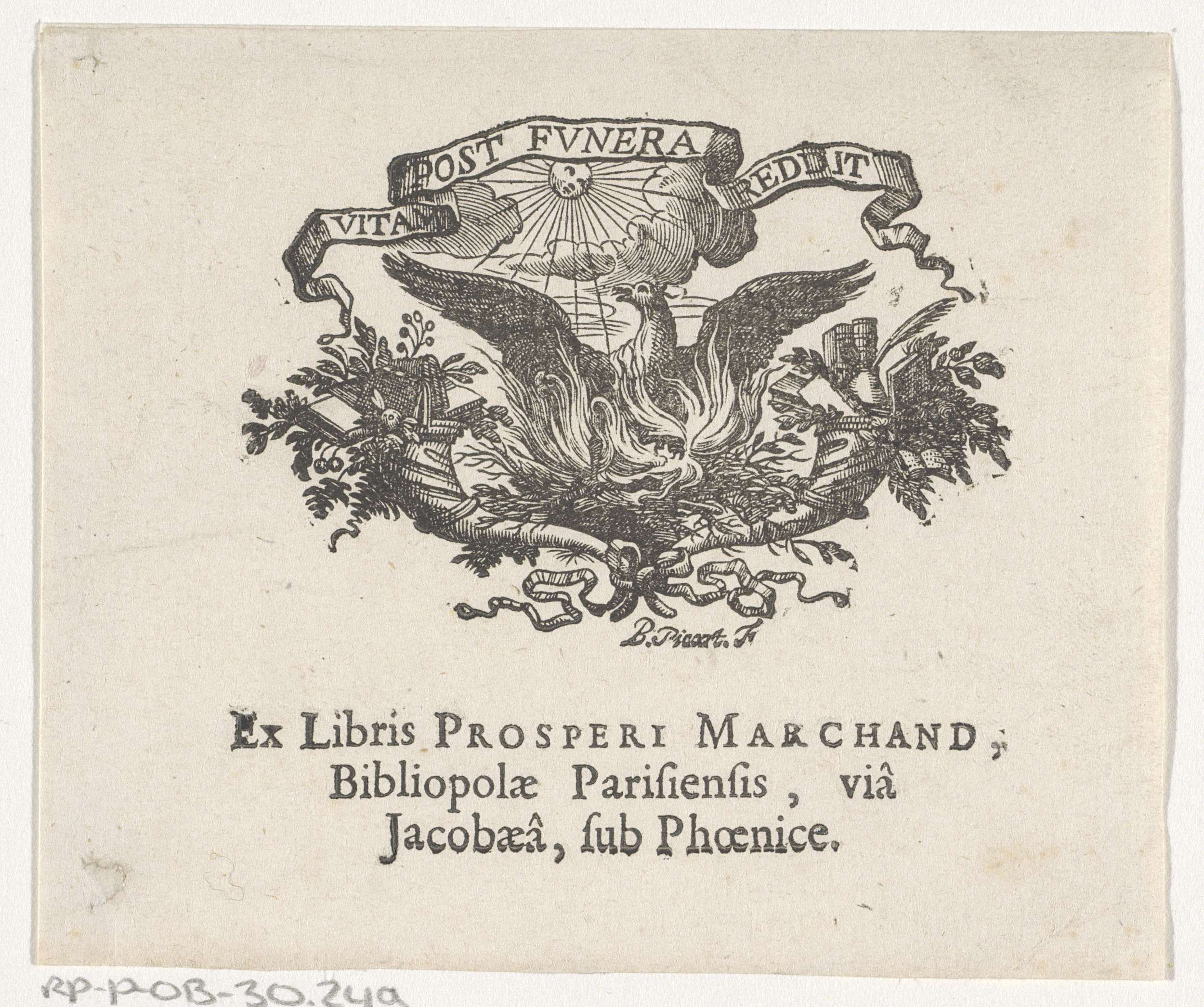 Ex libris van de boekverkoper Prosper Marchand 'In d...