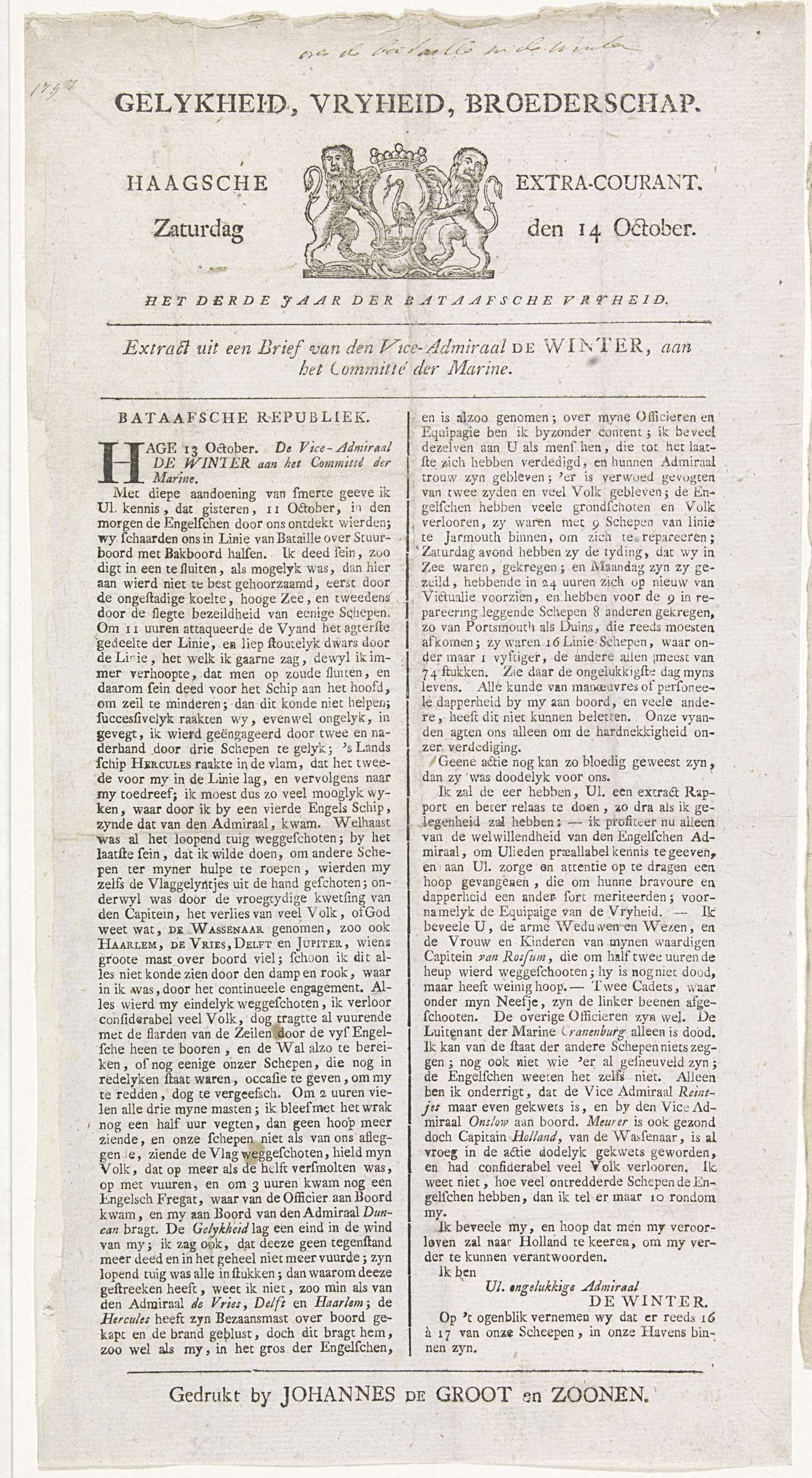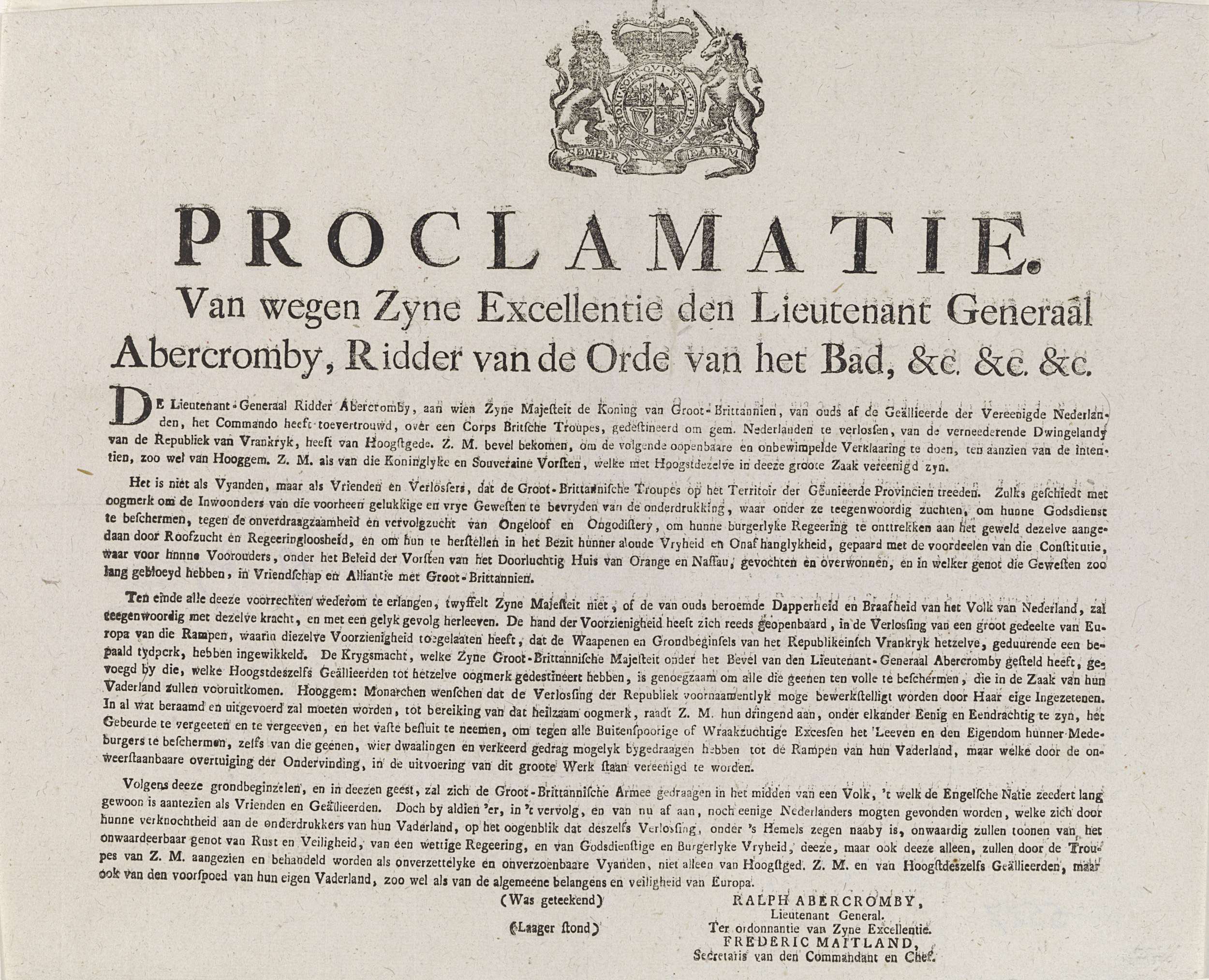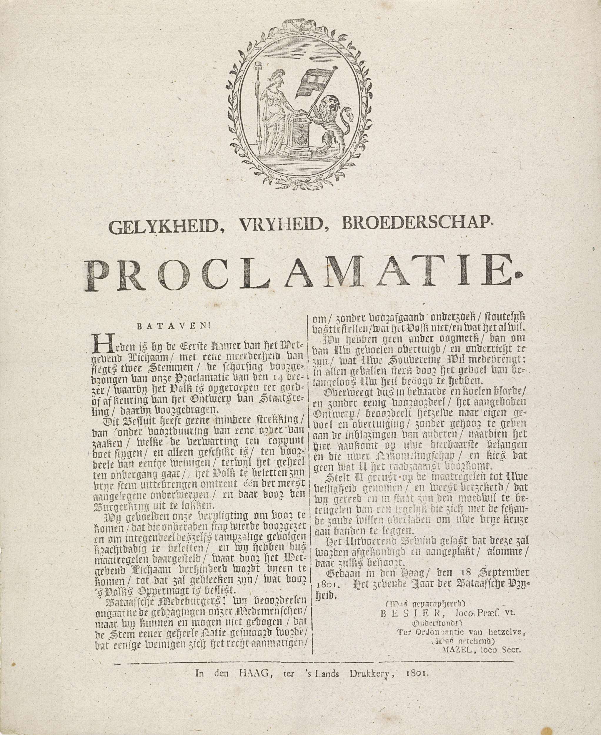 Publicatie waaarin het decreet van 4 februari 1795 o...