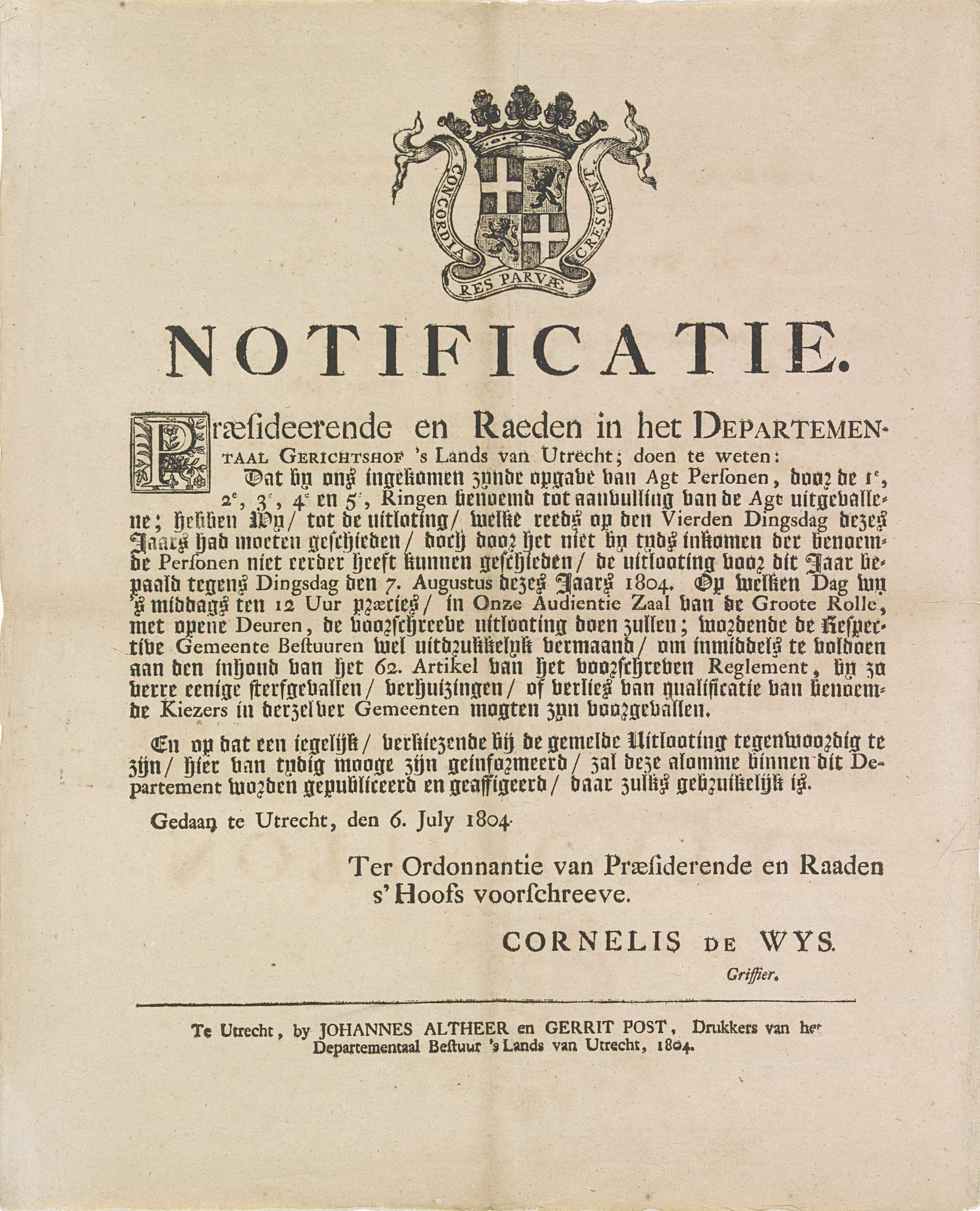 Notificatie van de uitloting Gerechtshof van Utrecht...