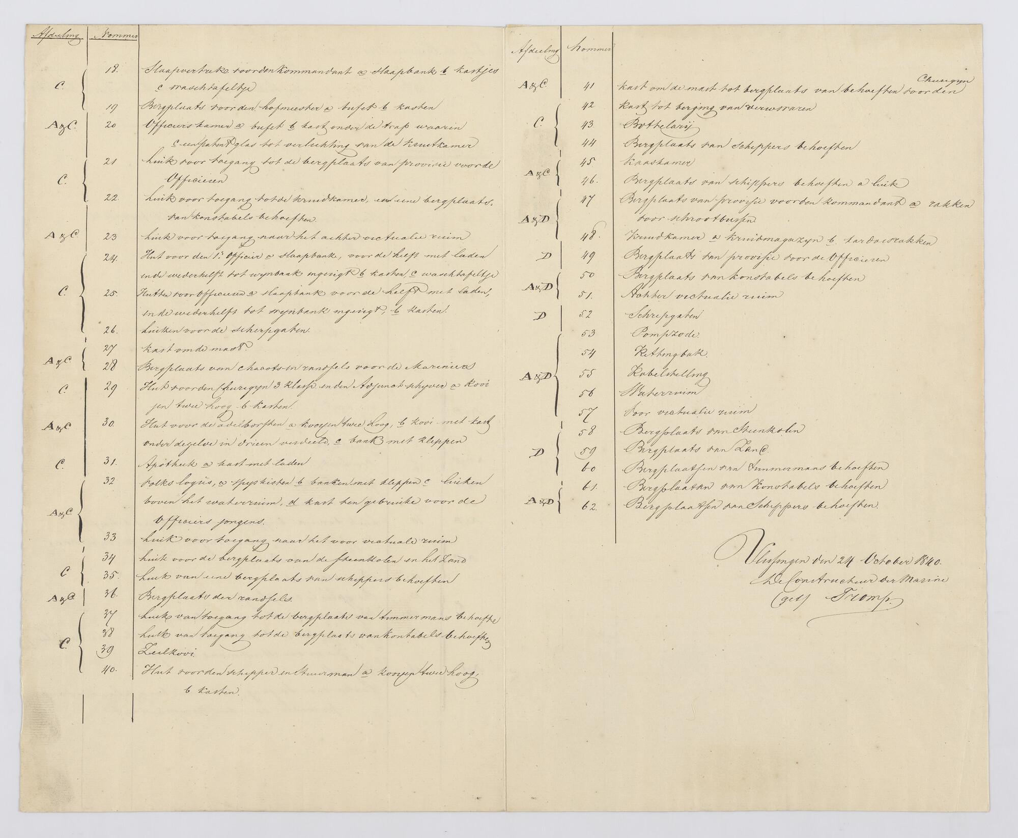 Indeling ruim van het korvet Zr.Ms. Van Speyk