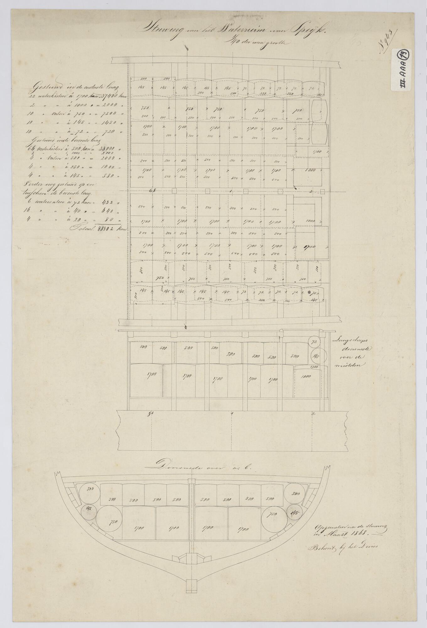 Indelingsplan van het waterruim van de brik Zr.Ms. '...