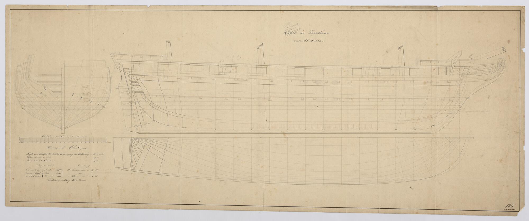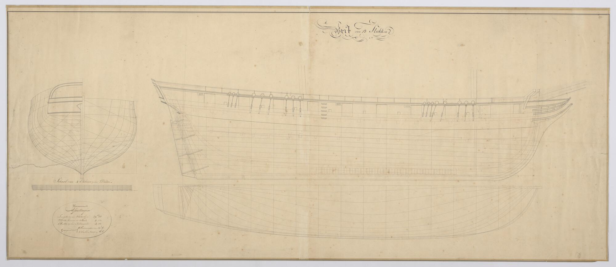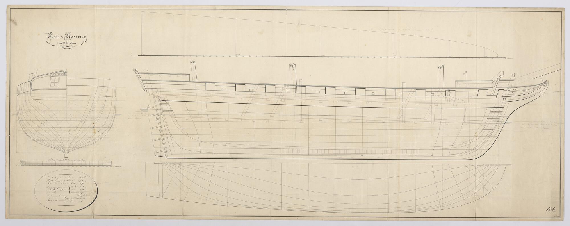 Lijnenplan van de brik Zr.Ms. 'Koerier' van 18 stukken