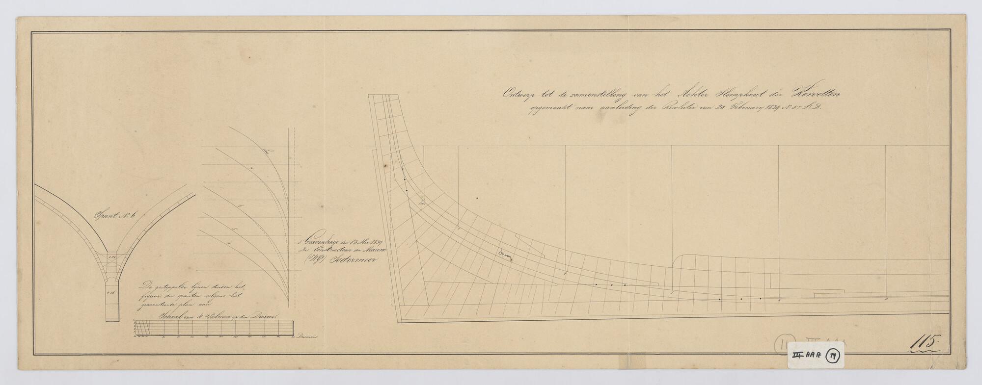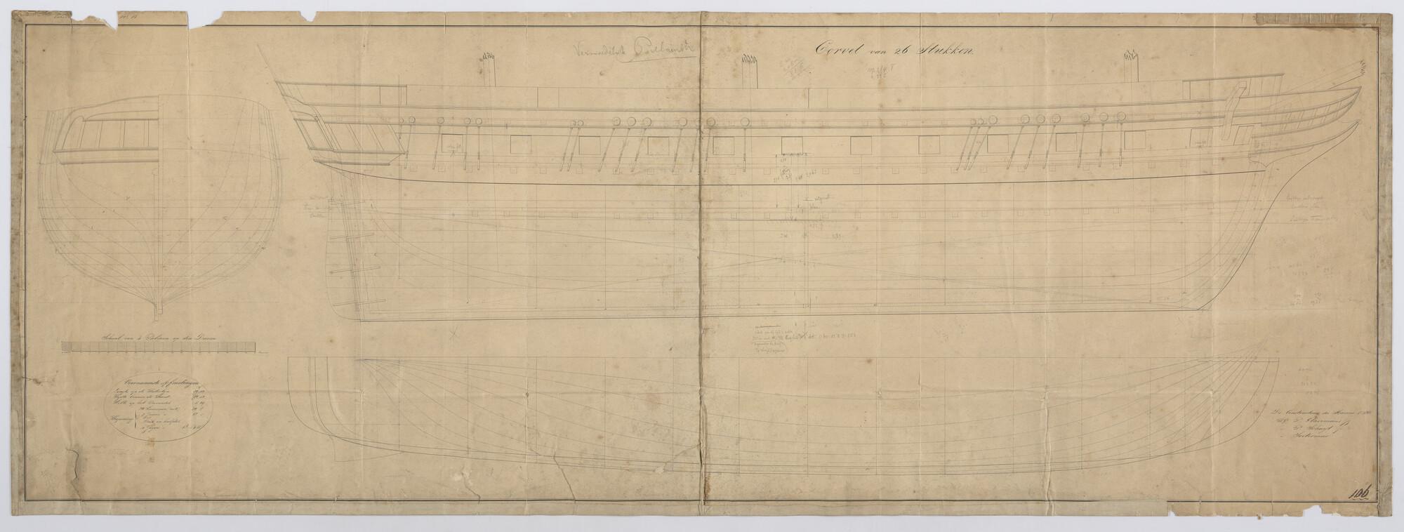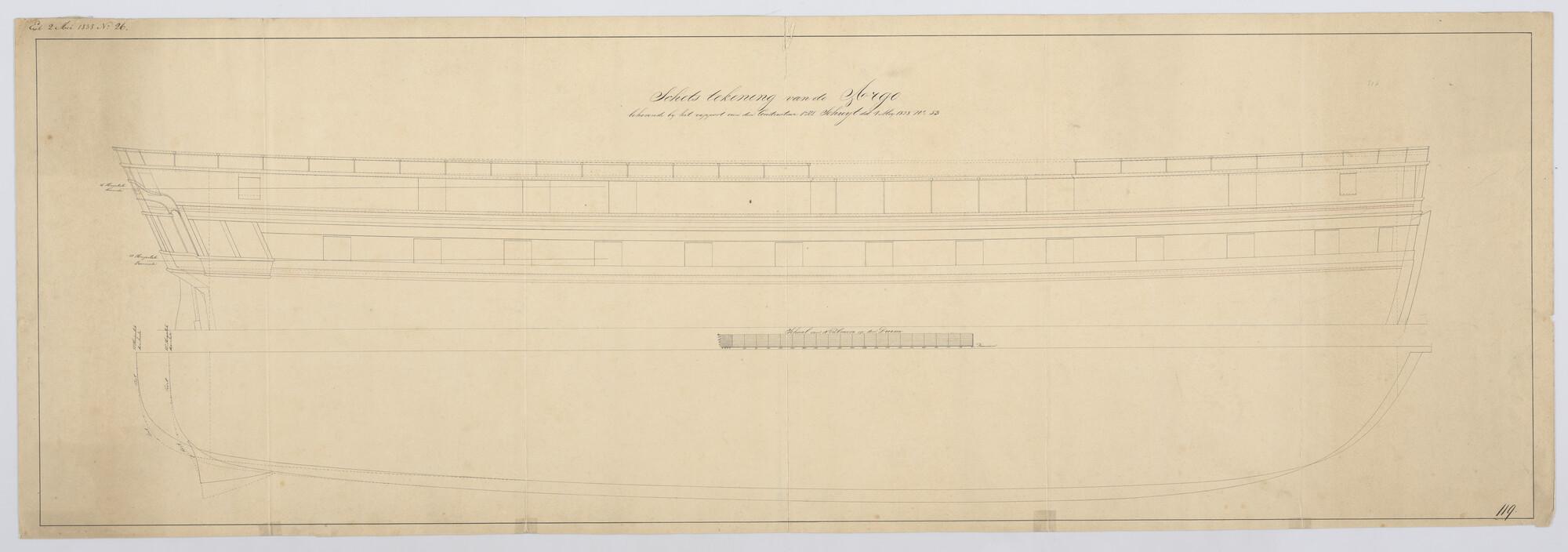 Lijnenplan van het korvet Zr.Ms. 'Argo' van 26 stukken
