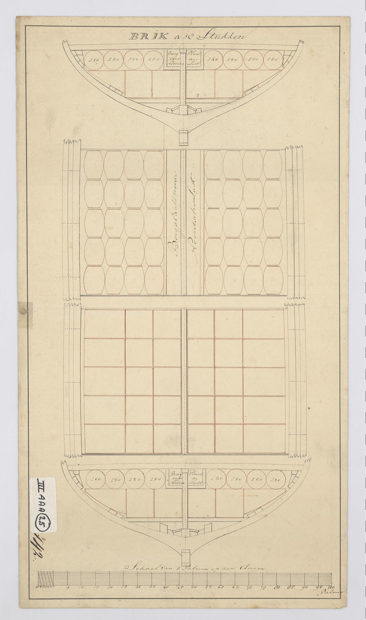 Indelingsplan van de brik Zr.Ms. 'Koerier' van 18 st...