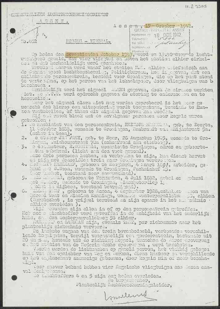 Proces-verbaal No. 462 Gemeentelijke Luchtbeschermin...