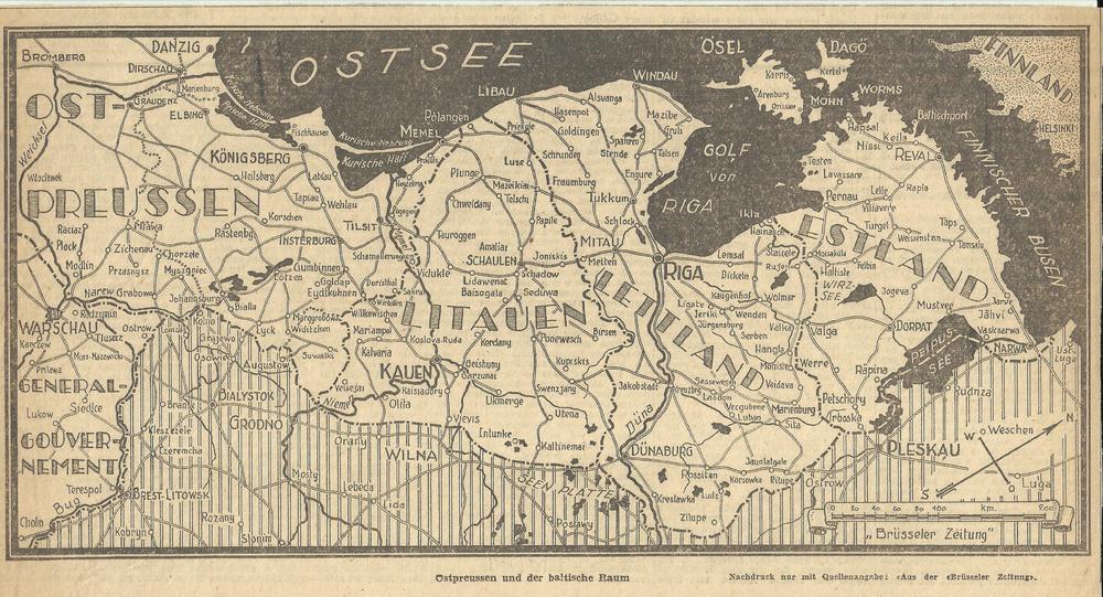 Kaartje Ostsee, Ost-Preussen, Litauen, Letland, Estl...