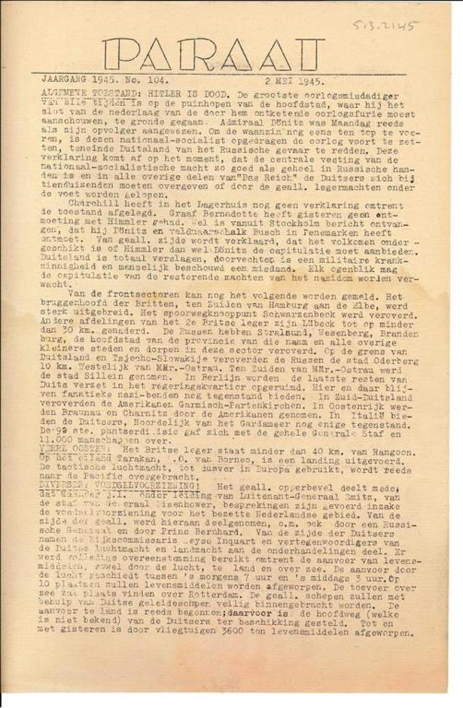 Paraat Jaargang 1945, Nr. 104, 2 Mei 1945