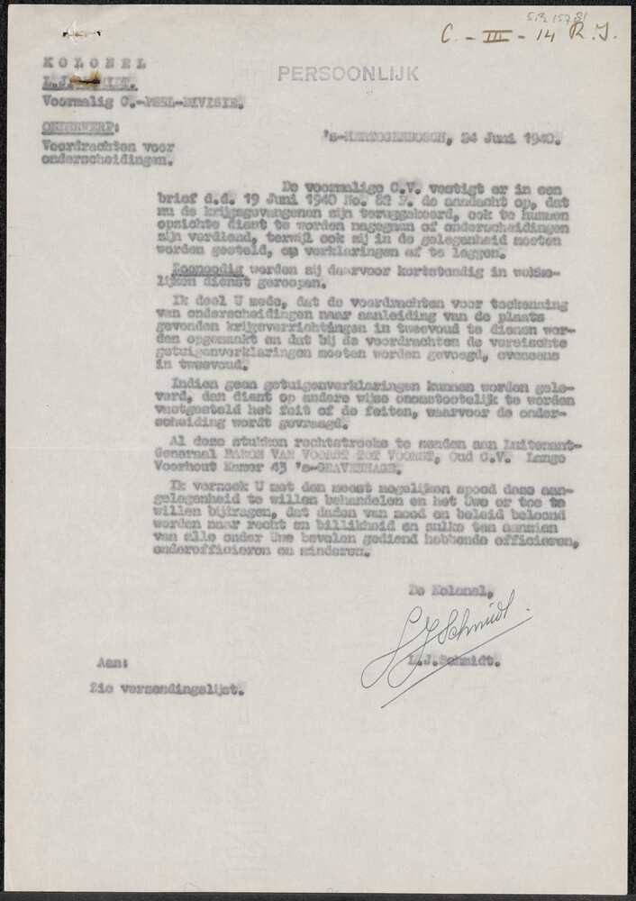 Brieven over voordrachten voor onderscheidingen