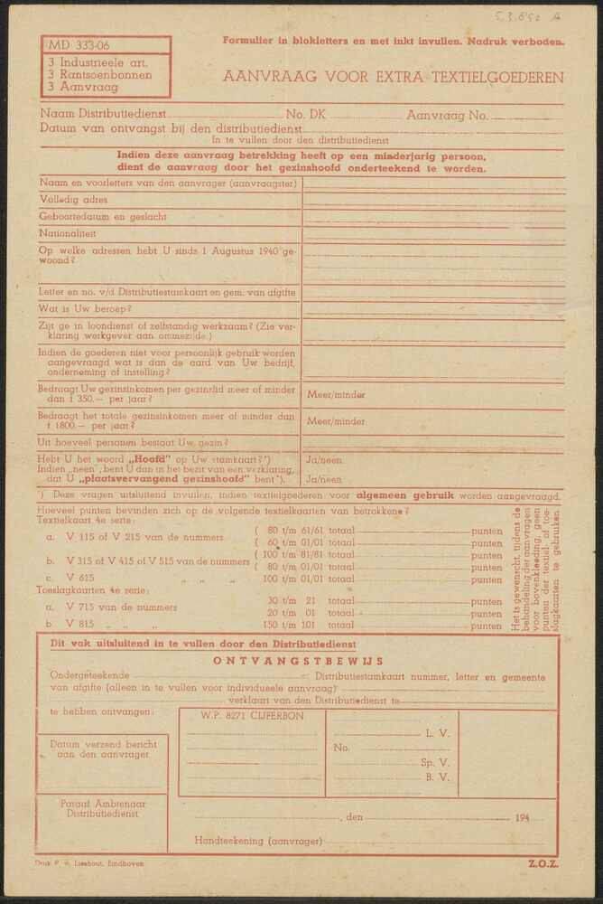 Formulier: aanvraag voor extra textielgoederen (blanco)