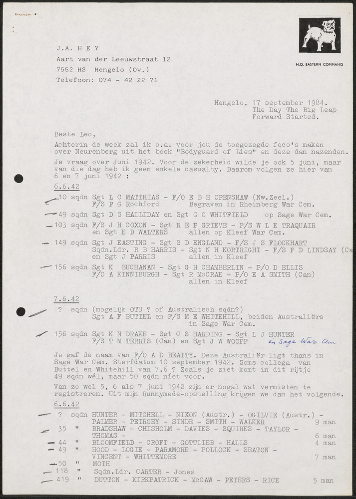 Lijst met casualties ( Slachtoffers) van juni 1942