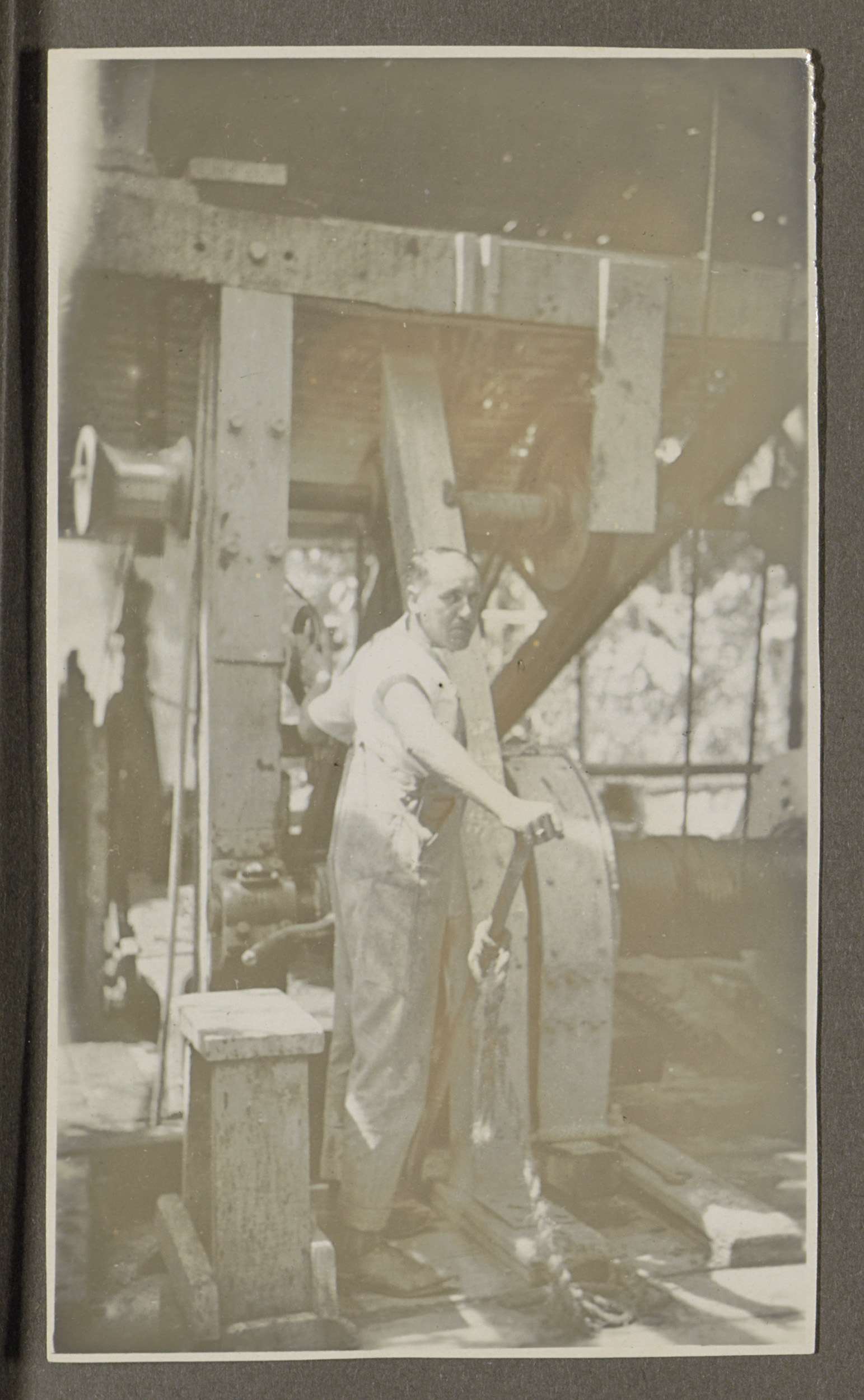 Man bedient een machine met een hendel