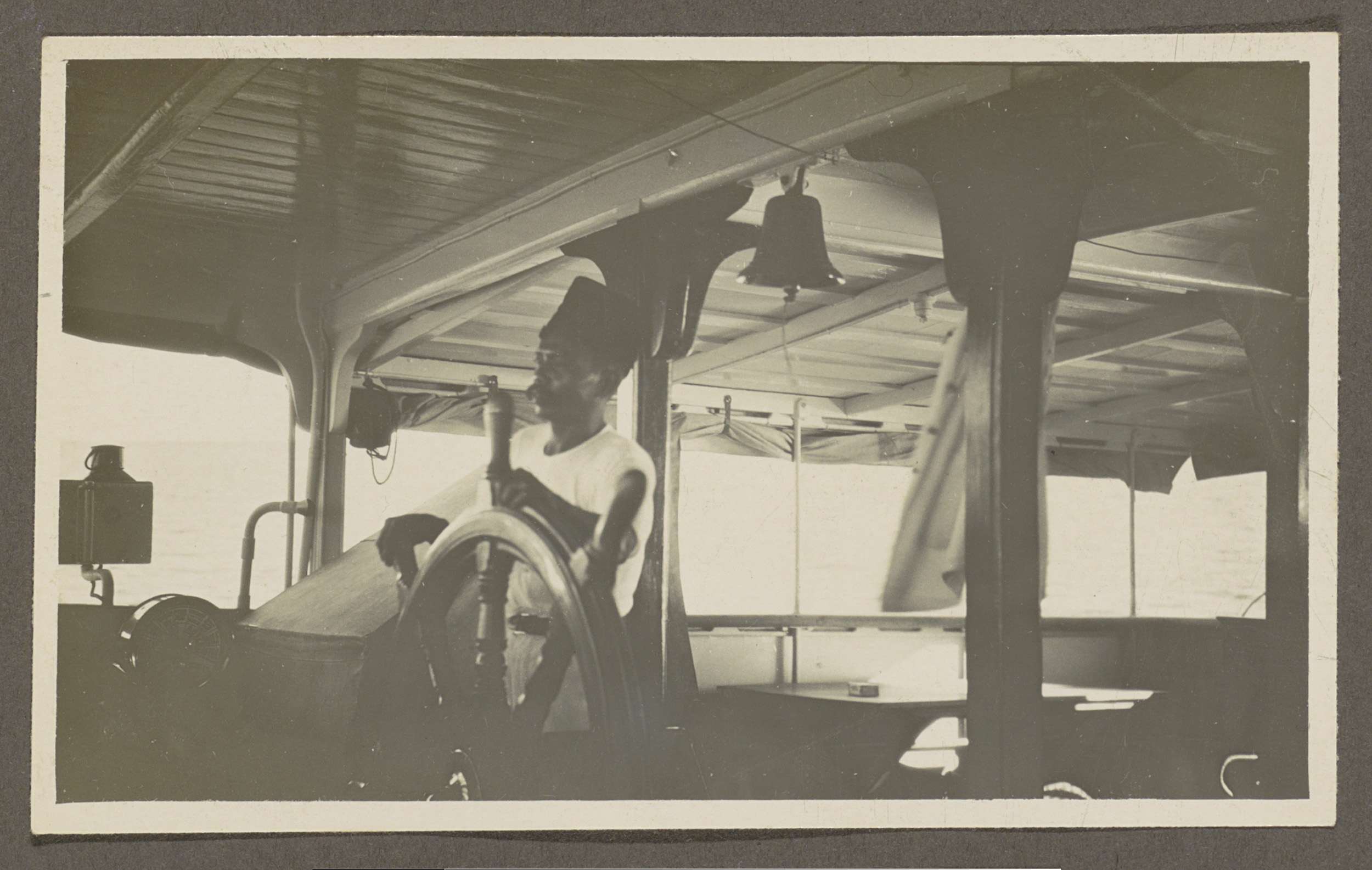 Man achter het stuurwiel van een schip