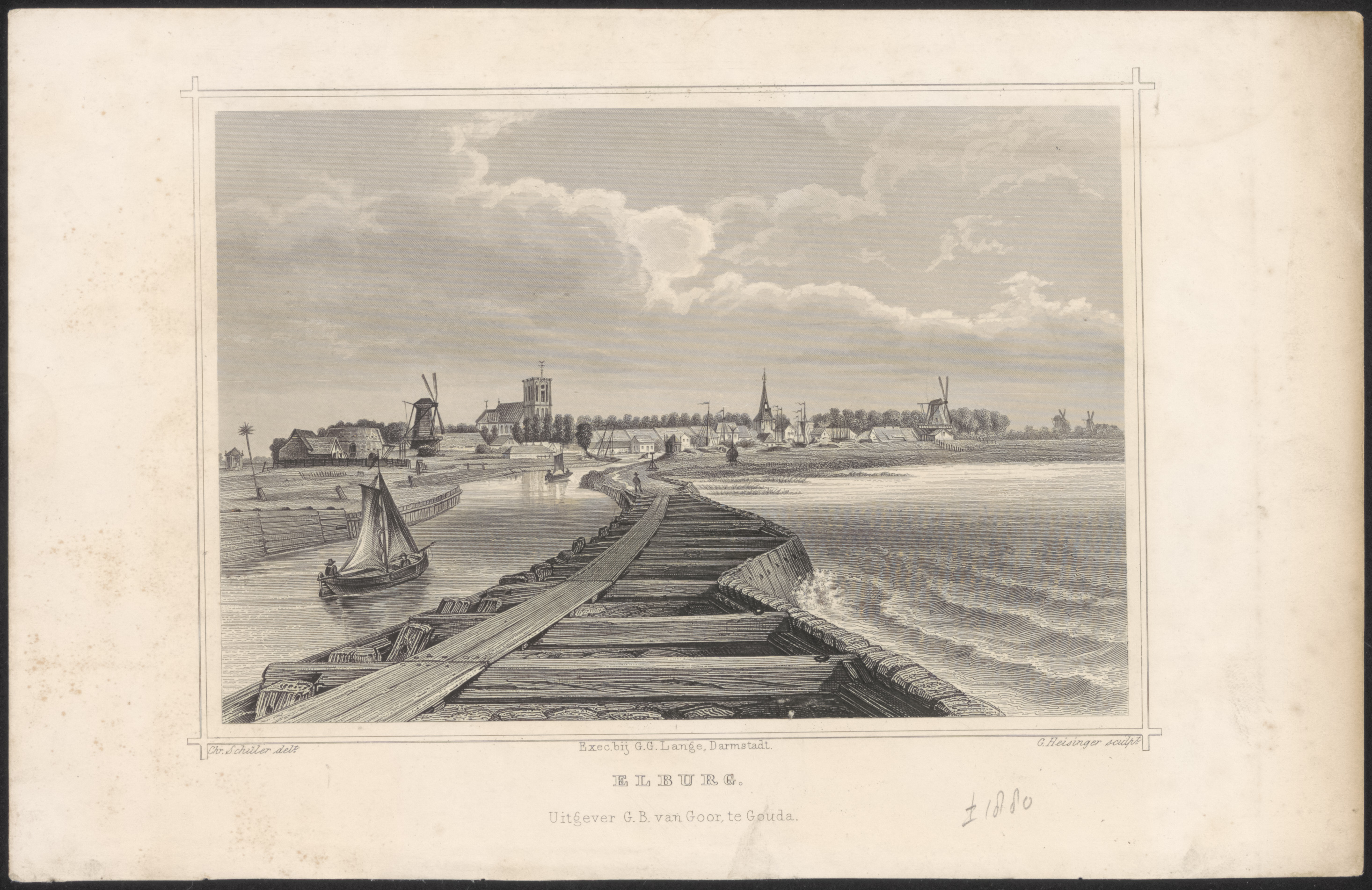 Gezicht van den storm en hoogen vloed, voor Elburg, ...